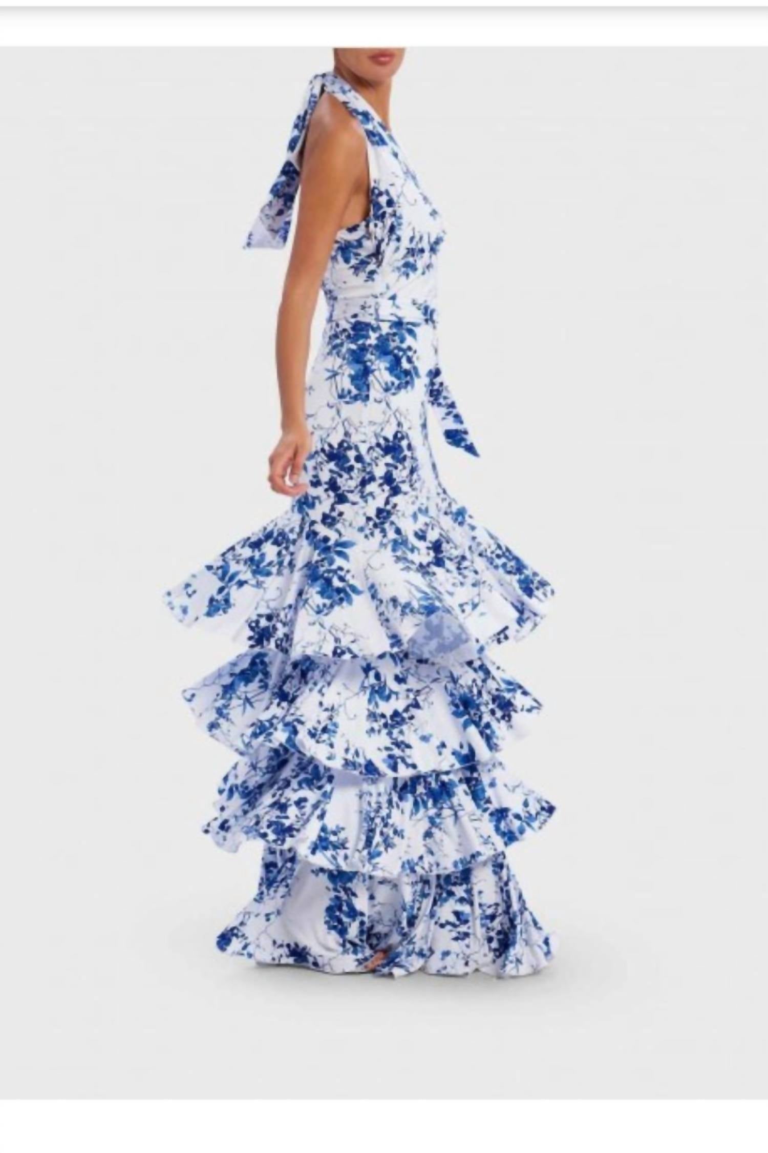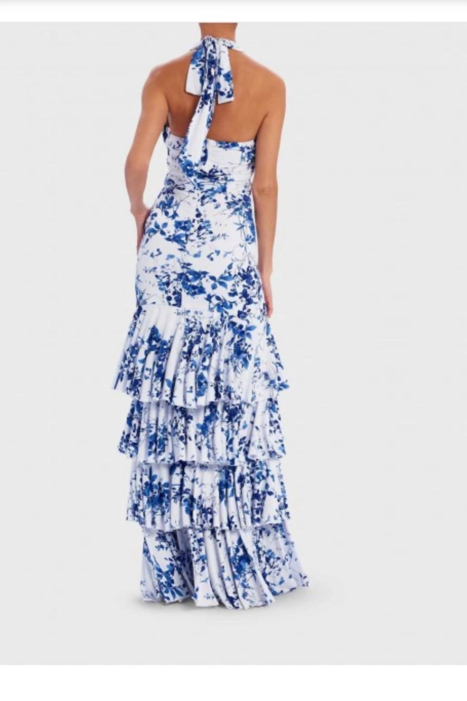 Носите это макси с любимым эффектным ожерельем и сандалиями для идеального образа. Это потрясающее платье в пол с цветочным принтом имеет каскадную юбку с оборками, завязку-халтер и привлекательный дизайн с открытой спиной. Платье Lula от Forver Unique.