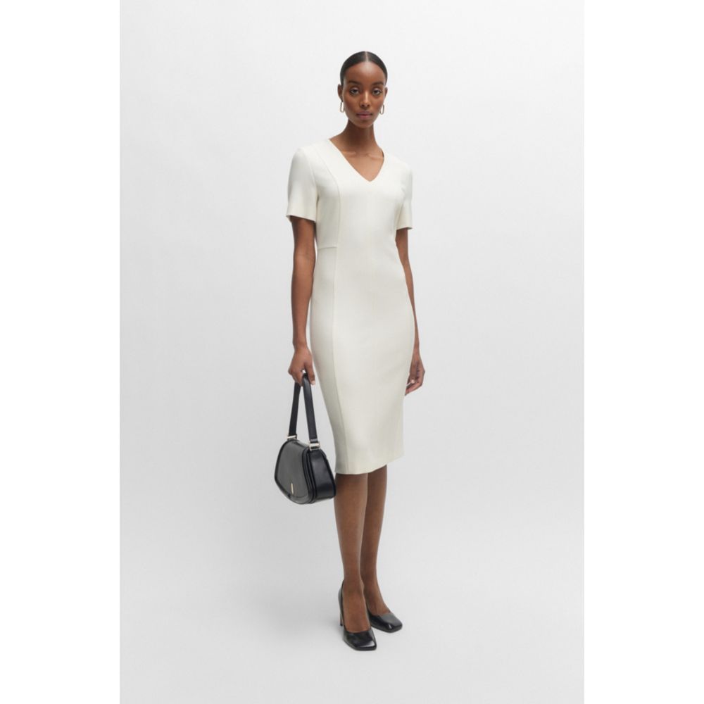 Облегающее деловое платье от BOSS Womenswear. Эта модель с короткими рукавами выполнена из эластичной ткани и имеет V-образный вырез.