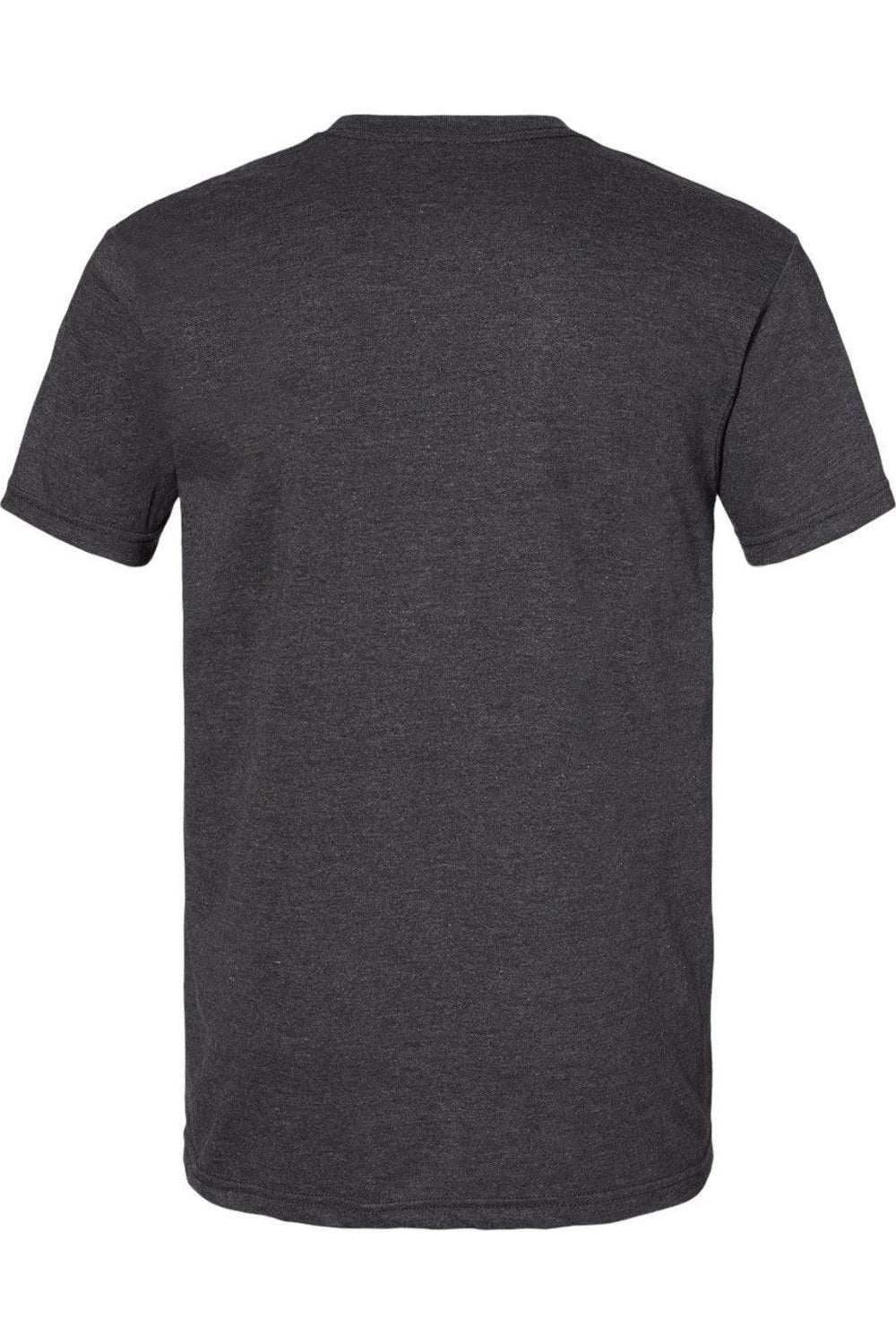 4,6 унции/ярд (США) 7,7 унции/литр ярд (КА), 60/40 хлопок/полиэстер, 30 одинарных слоёв. Мягкая гребенная кольцевая пряжа из смеси хлопка с высоким содержанием хлопка. Современный классический крой. Высокая плотность стежков для более гладкой поверхности печати. ​​Неотстроченный, узкий, ребристый воротник. Проклеенная горловина и плечи. Двойная игла на рукавах и подгибах. Отрывная этикетка.