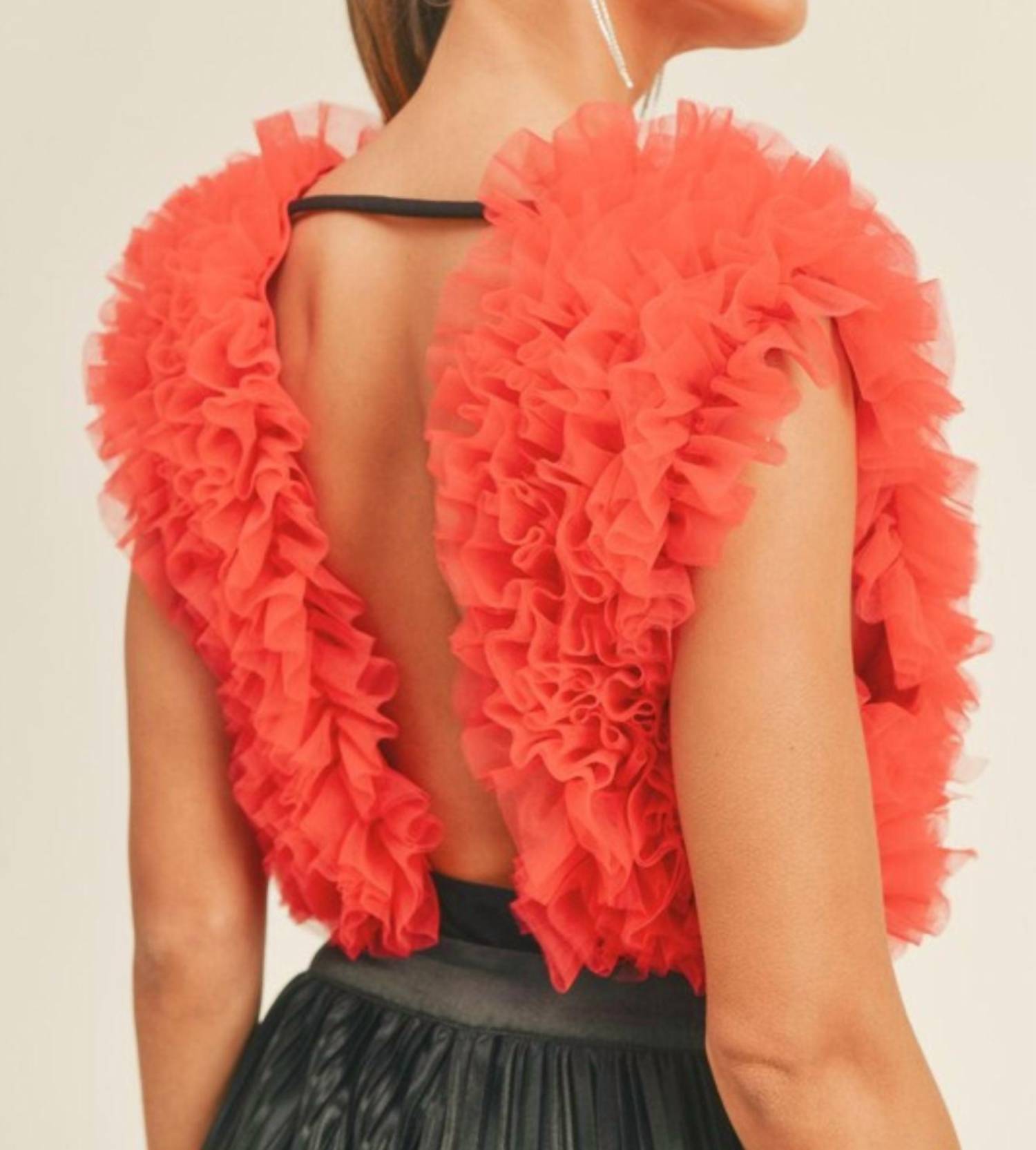 Основная часть - 100% нейлон Контраст - 92% полиэстер | 8% спандекс. Подкладка - 100% полиэстер. Это красно-черное боди имеет глубокий вырез и нежную отделку из тюля с оборками. Соответствует размеру.