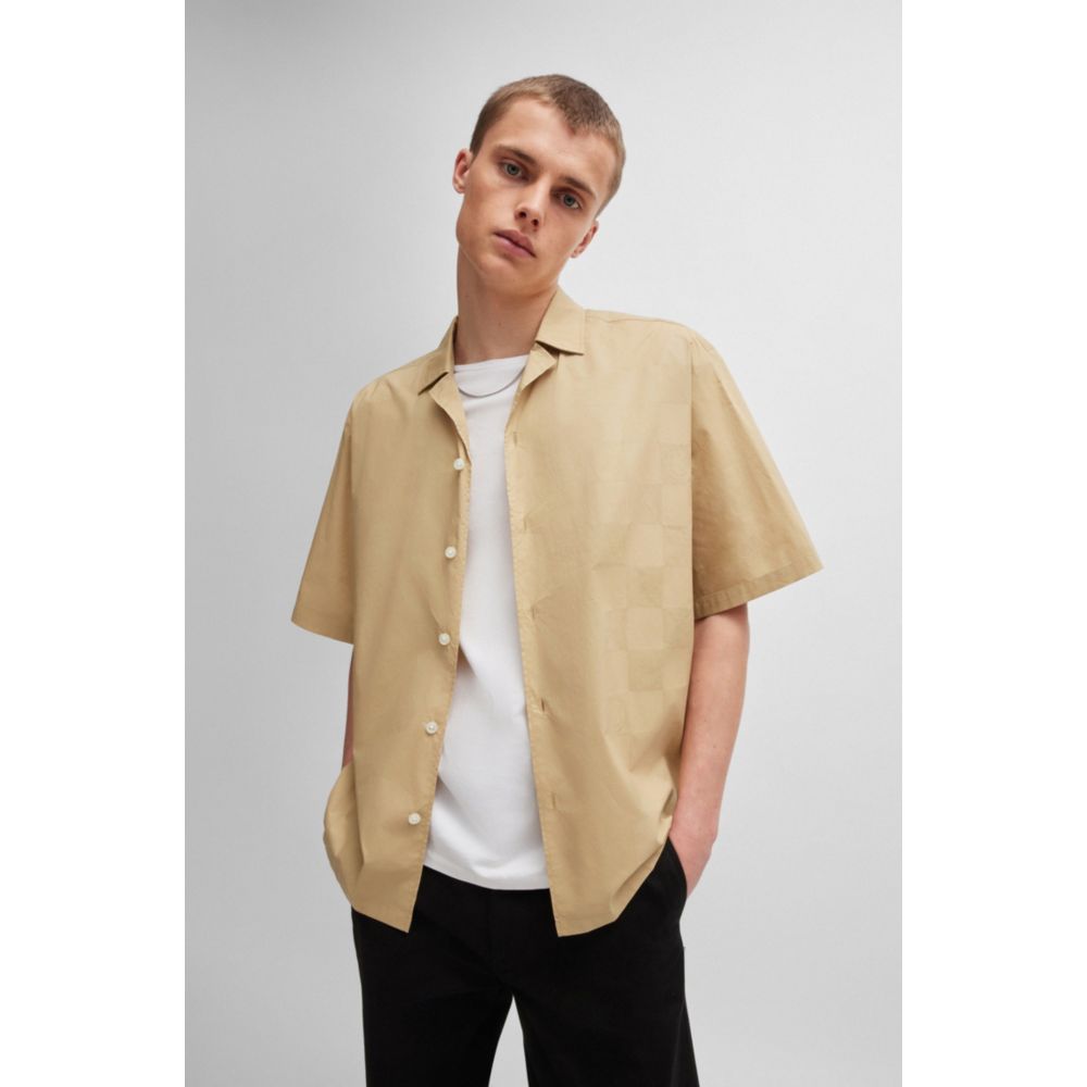 Освежите повседневные образы с этой свободной рубашкой с коротким рукавом от HUGO Menswear, с уникальным принтом. Изготовлена ​​из плотного, дышащего чистого хлопкового поплина.