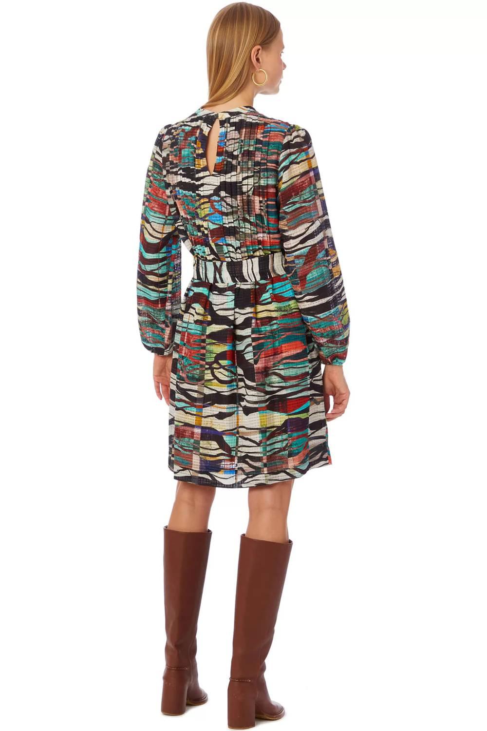 Это платье с длинными рукавами идет с дополнительным поясом-завязкой и демонстрирует складки-защипы вдоль шеи и лифа. Оно имеет вырез-капля на спине и лиф на подкладке для дополнительного комфорта. Сделано из 56% вискозы и 44% льна, рекомендуется только сухая чистка. Длина X-Small составляет 34 дюйма.