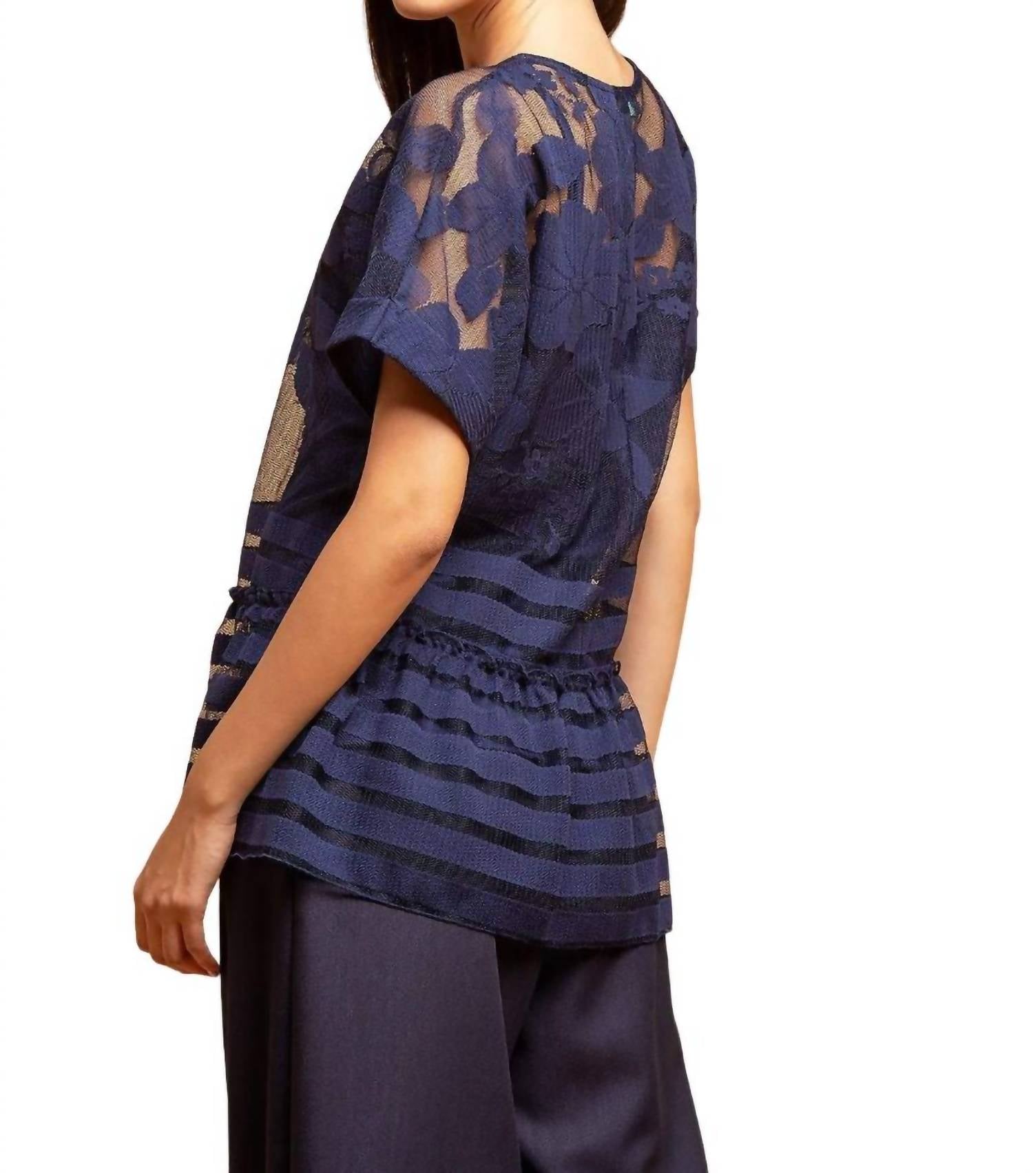 Топ Peplum Lace Top имеет стиль пуловера и изготовлен из 100% полиэстера с подкладкой из полиэстера. У него короткие рукава, и он требует химчистки. Этот топ сделан в США, и его стандартные размеры составляют около 25,5 дюймов в длину.
