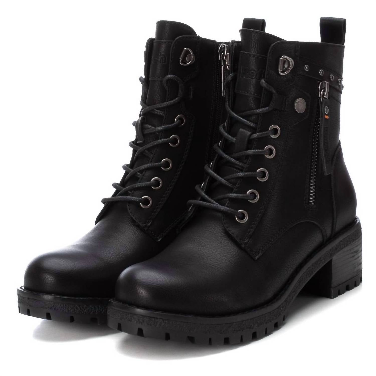 Эти повседневные ботильоны выполнены из искусственной кожи, имеют боковую молнию, шнуровку и блочный каблук высотой 1,96 дюйма с декоративными металлическими деталями и нескользящую резиновую подошву для стиля и комфорта.