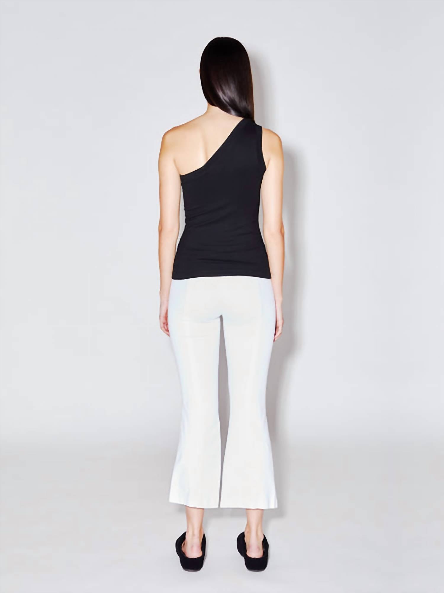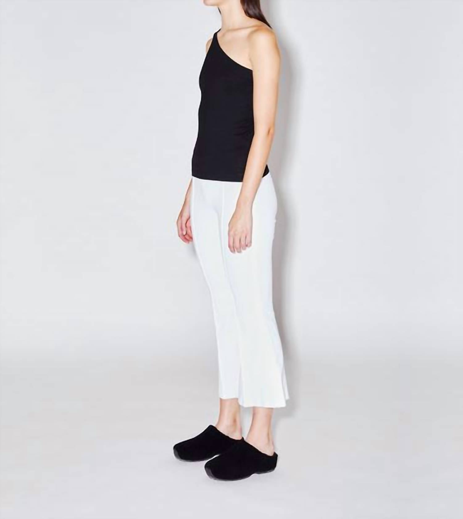 Стиль натягивания. Укороченные расклешенные брюки. Эластичный пояс. Соответствует размеру. 96% вискозы, 4% хлопка.