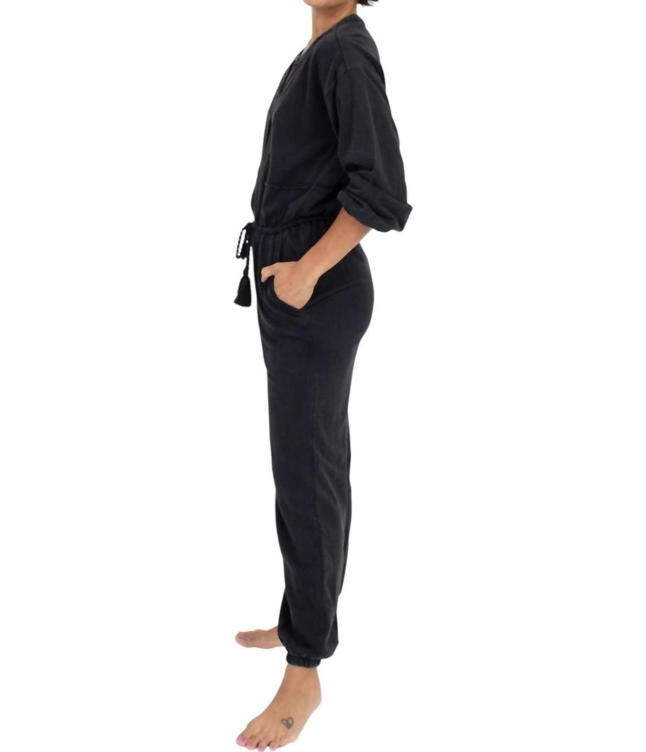 Круглый вырез. Застежка на пуговицы сверху. Завязка с кисточками на талии. Утягивающие запястья и щиколотки. Изготовлено из органического хлопка.