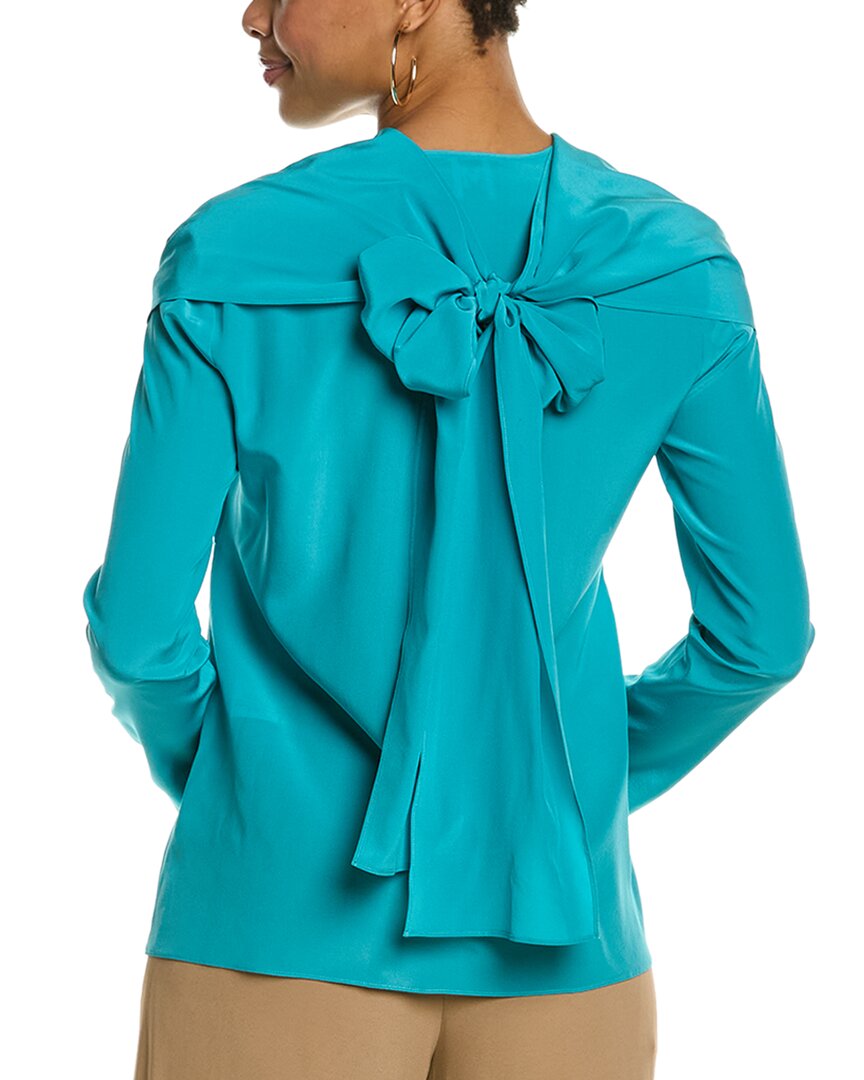 • Шелковая блузка цвета синего озера с завязывающимися спереди поясами на груди