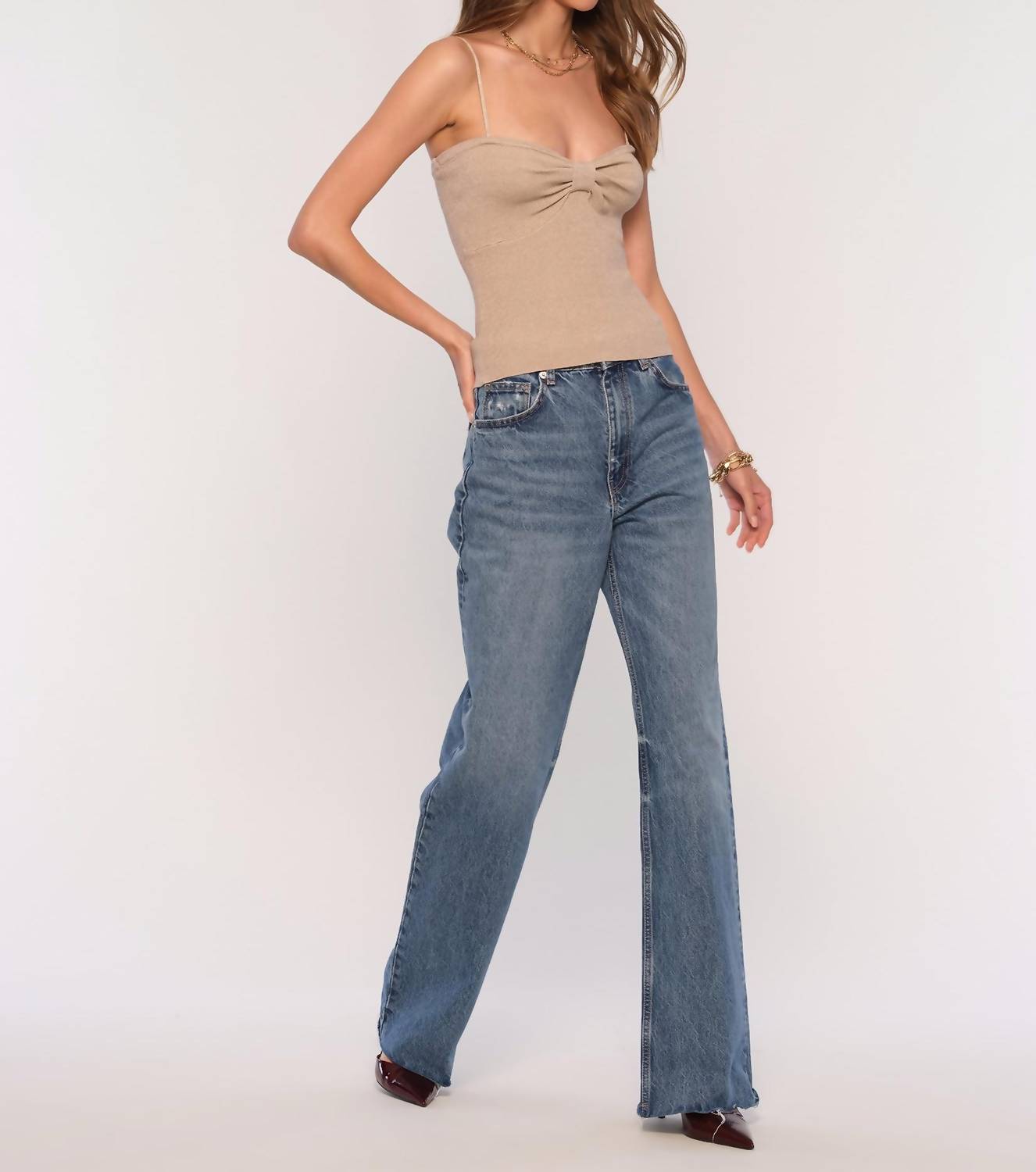 Топ Colette Cami от Heartloom. Трикотажная ткань Shimmer Rib Knit в элегантном бежевом цвете. Тонкие бретельки с бантом спереди. Облегающий крой с квадратным вырезом. Застежка-липучка для непринужденного стиля. Идеально подходит как для повседневного, так и для нарядного образа.