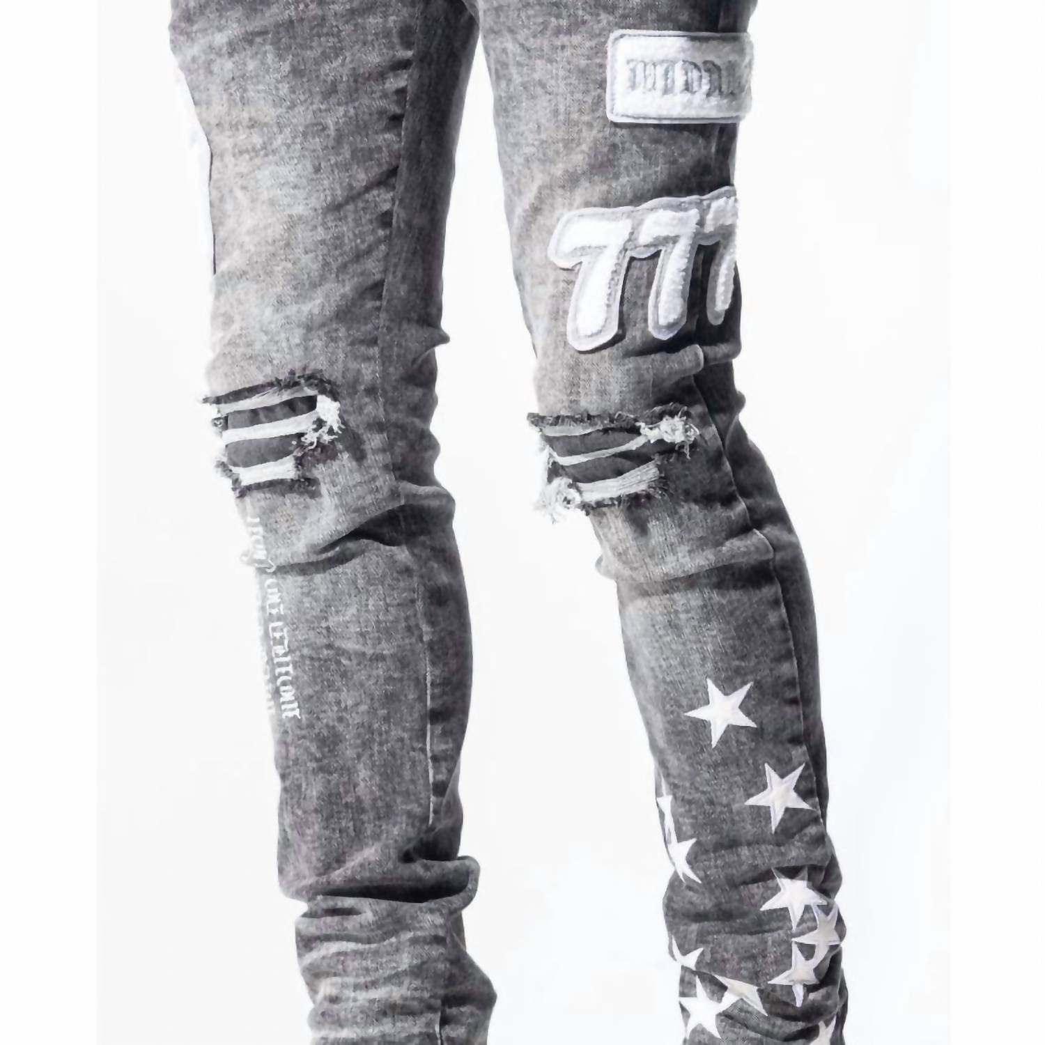 GALA ORIGINAL "GAMBLE EVERYTHING" DENIM. СООТВЕТСТВУЕТ РАЗМЕРУ. Модель ростом 6 футов 1 дюйм, весом 165 фунтов носит размер 30. СТРЕЙЧ ПОЛУНОЧНАЯ СТИРКА, ЗАУЖЕННЫЙ ДЕНИМ С НЕРАЗОРВАННЫМИ РАЗРЫВАМИ И ШАРОМ. ОСОБЕННОСТИ - НАШИВКА GALA ORIGINAL CUSTOM DESIGN CHANNEL, КОТОРАЯ ПРИКРЕПЛЯЕТСЯ К КУРТКЕ "GAMBLE EVERYTHING". ДОБАВЛЕНЫ ГРАФИЧЕСКИЕ ПРИНТЫ "ЗВЕЗДЫ" НИЖЕ КОЛЕНА С ЛЕВОЙ СТОРОНЫ.