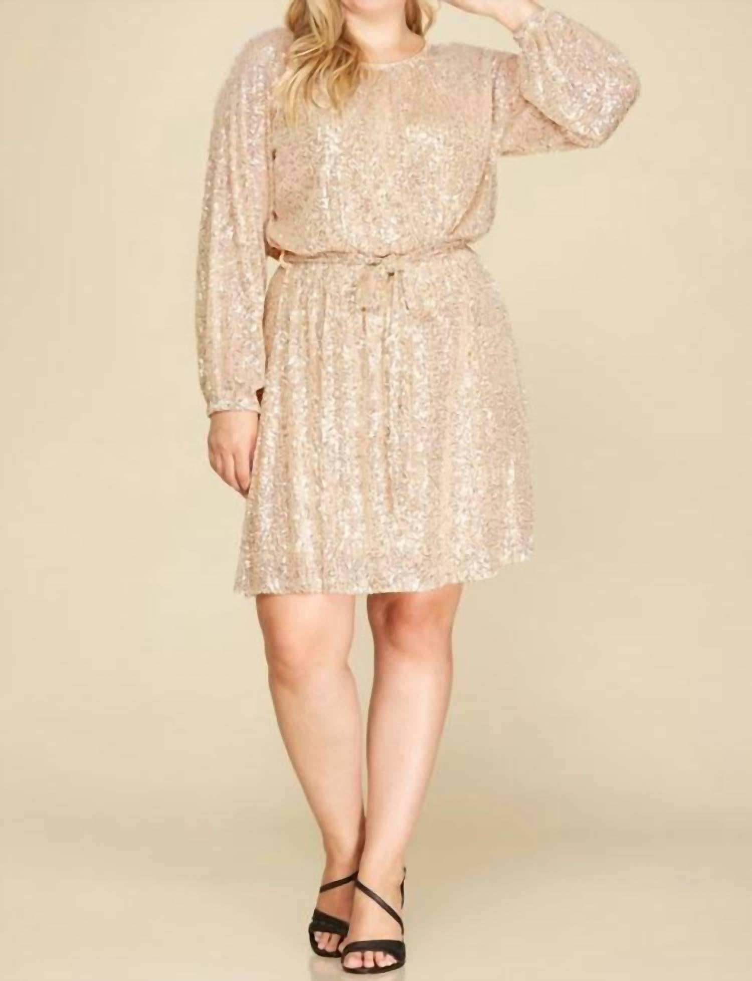 Облегающее, но удобное платье, которое вы будете носить сезон за сезоном. Это такое милое и идеальное платье для празднования дня рождения, Вегаса или веселого вечера. Цвет шампанского, длинные рукава и красивая закрытая линия горловины помогают этому платью длиной до колена сохранять комфорт и выглядеть потрясающе.