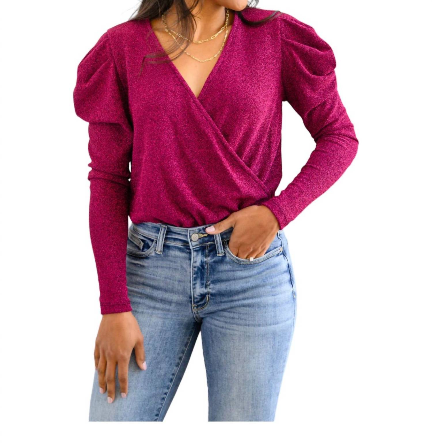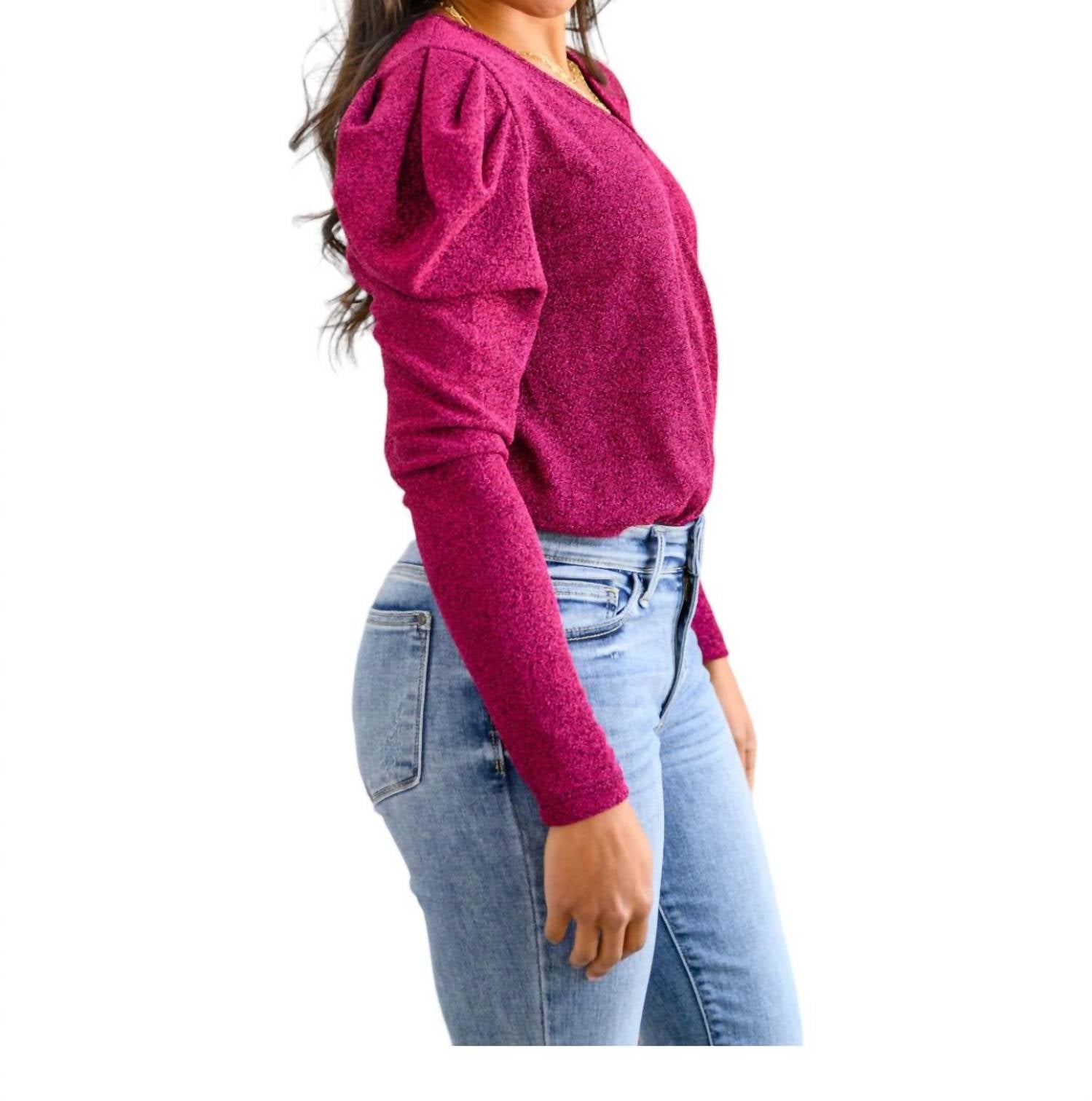 Легкий трикотаж с блестками. Вырез горловины с запахом. Длинные рукава-фонарики. Ложный лиф с запахом. Пришитые трикотажные плавки с полным покрытием. Застегивается на кнопки. Эластичный. Соответствует размеру. 95% полиэстер, 5% спандекс.