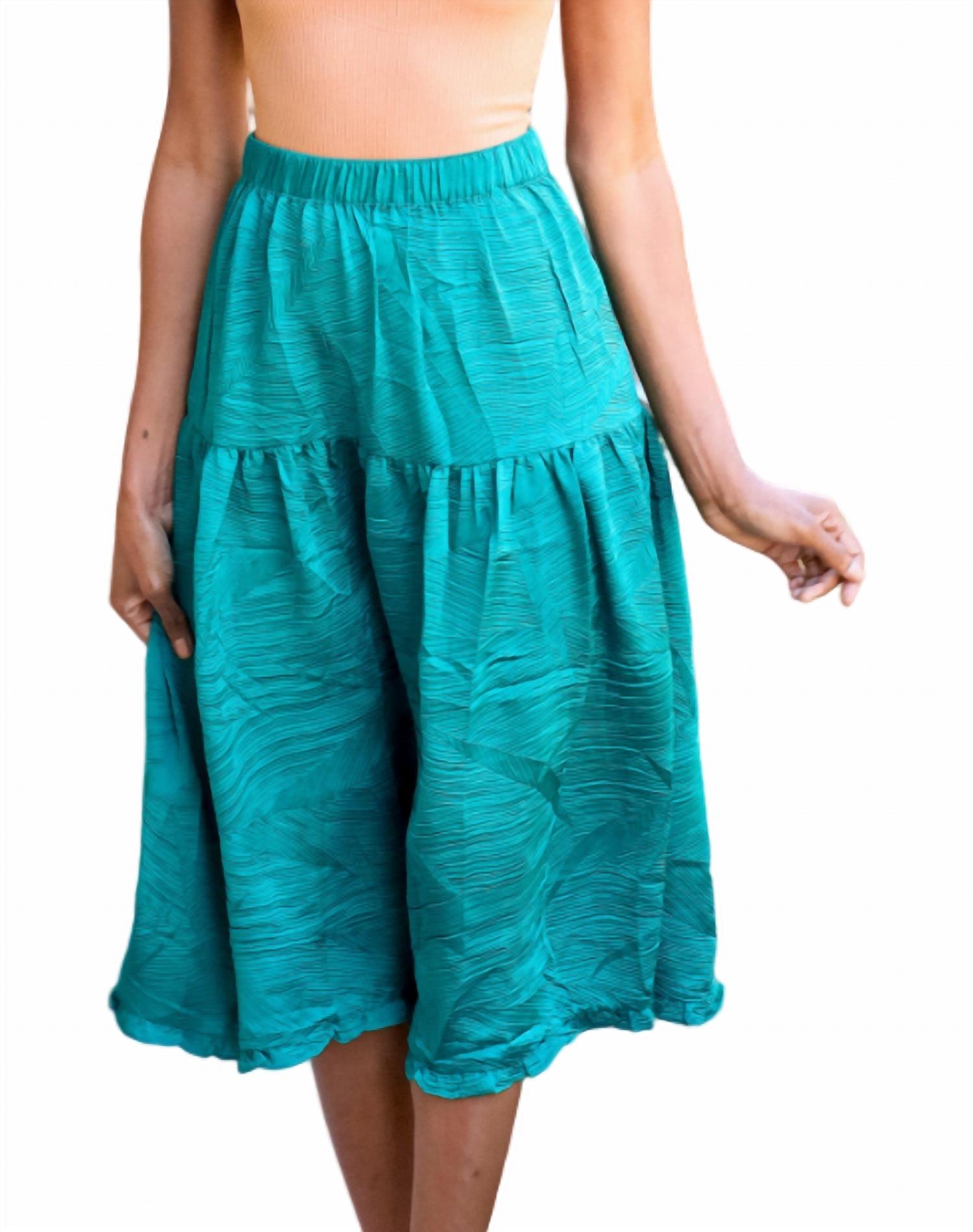 Юбка миди изумрудно-зеленого цвета с мятой текстурой и эластичной талией. Эта юбка миди подойдет для любого случая. Она имеет длину миди, сзади эластичный пояс со сборками и карманы. Подкладка обеспечивает дополнительный комфорт. Ткань очень мягкая. Материал - 95% хлопок, 5% эластан.