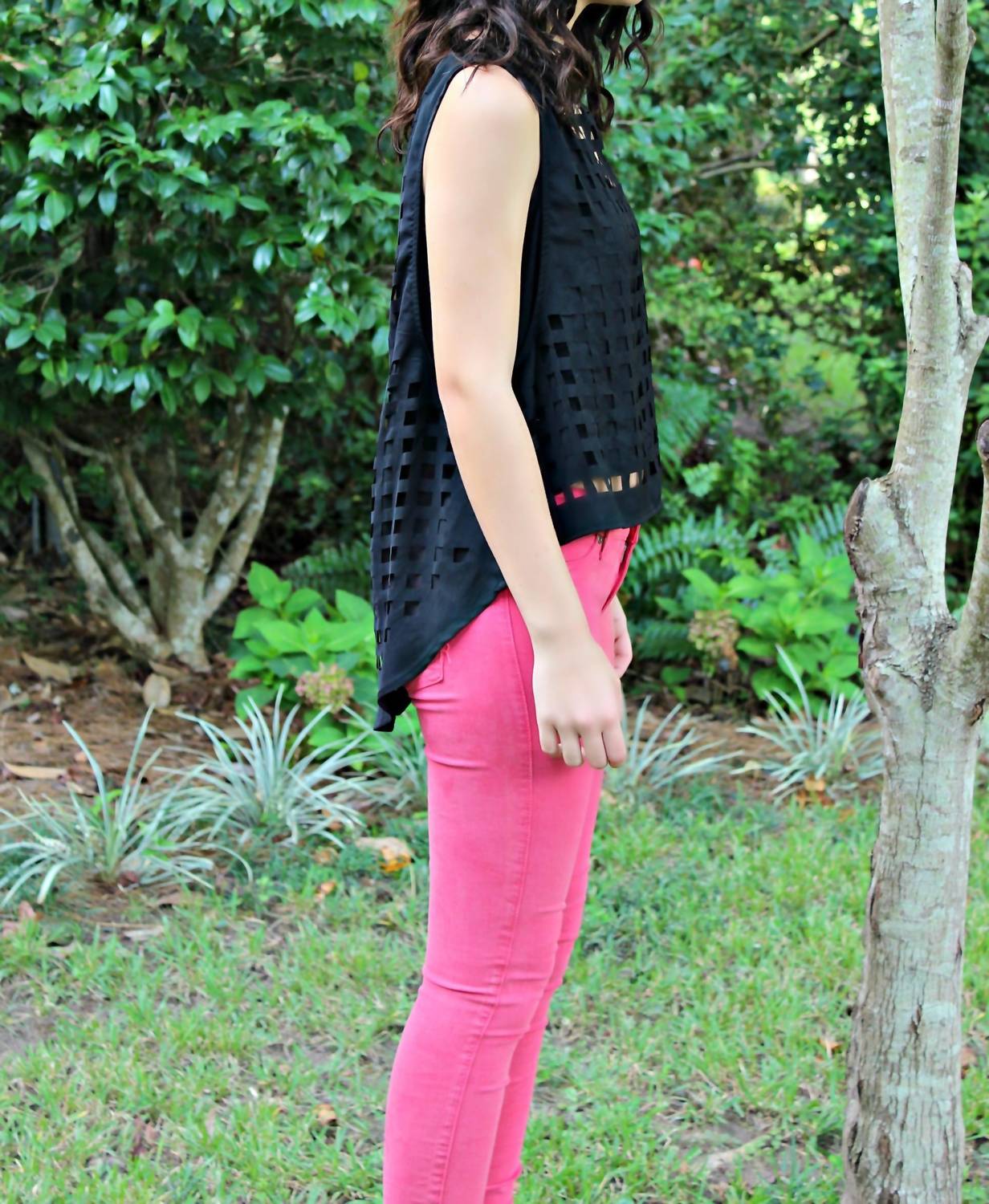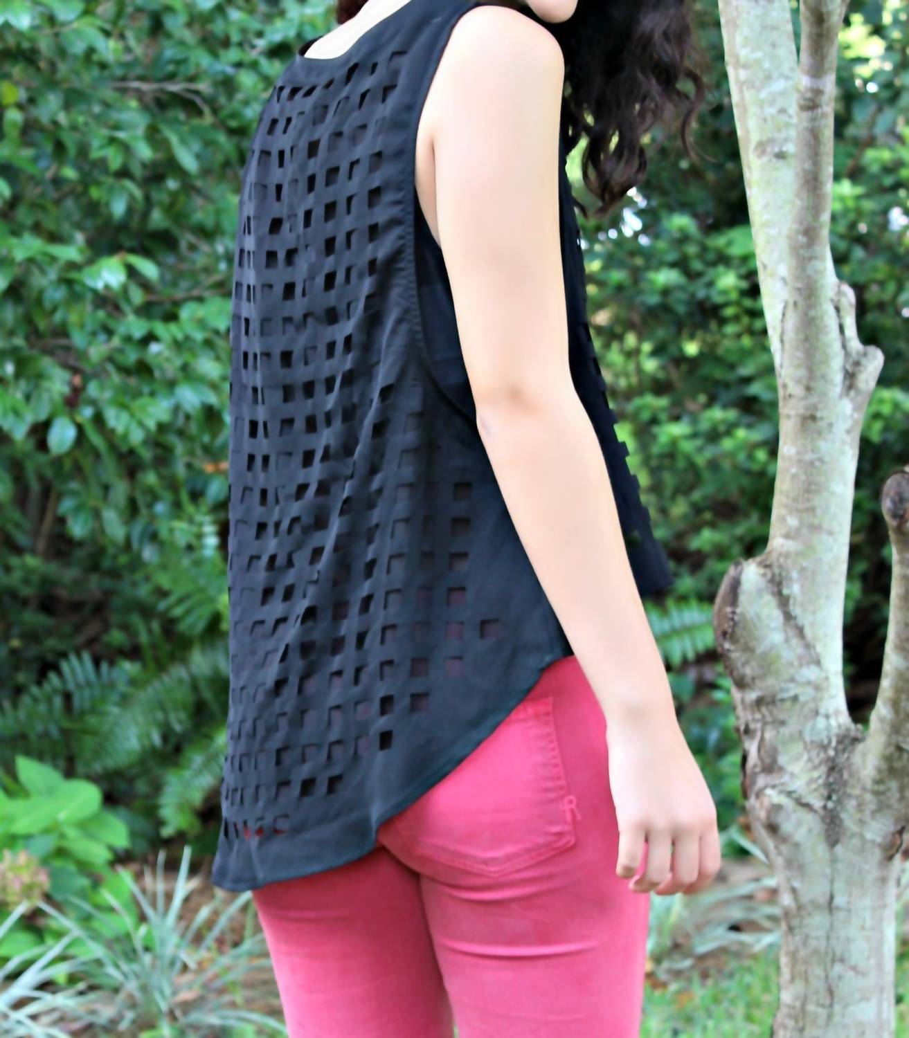 Посадка, ткань и функциональность. Эта майка отвечает всем требованиям. Не оглядывайтесь назад! Этот стильный черный топ без рукавов поможет вам встретить день, что бы ни ждало вас впереди! Подходит для бюстгальтера, со встроенной черной майкой. Внешний слой имеет черные квадратные вырезы и низкие проймы. Верхняя часть имеет хай-лоу подол. На нашей модели надета маленькая. 100% полиэстер
