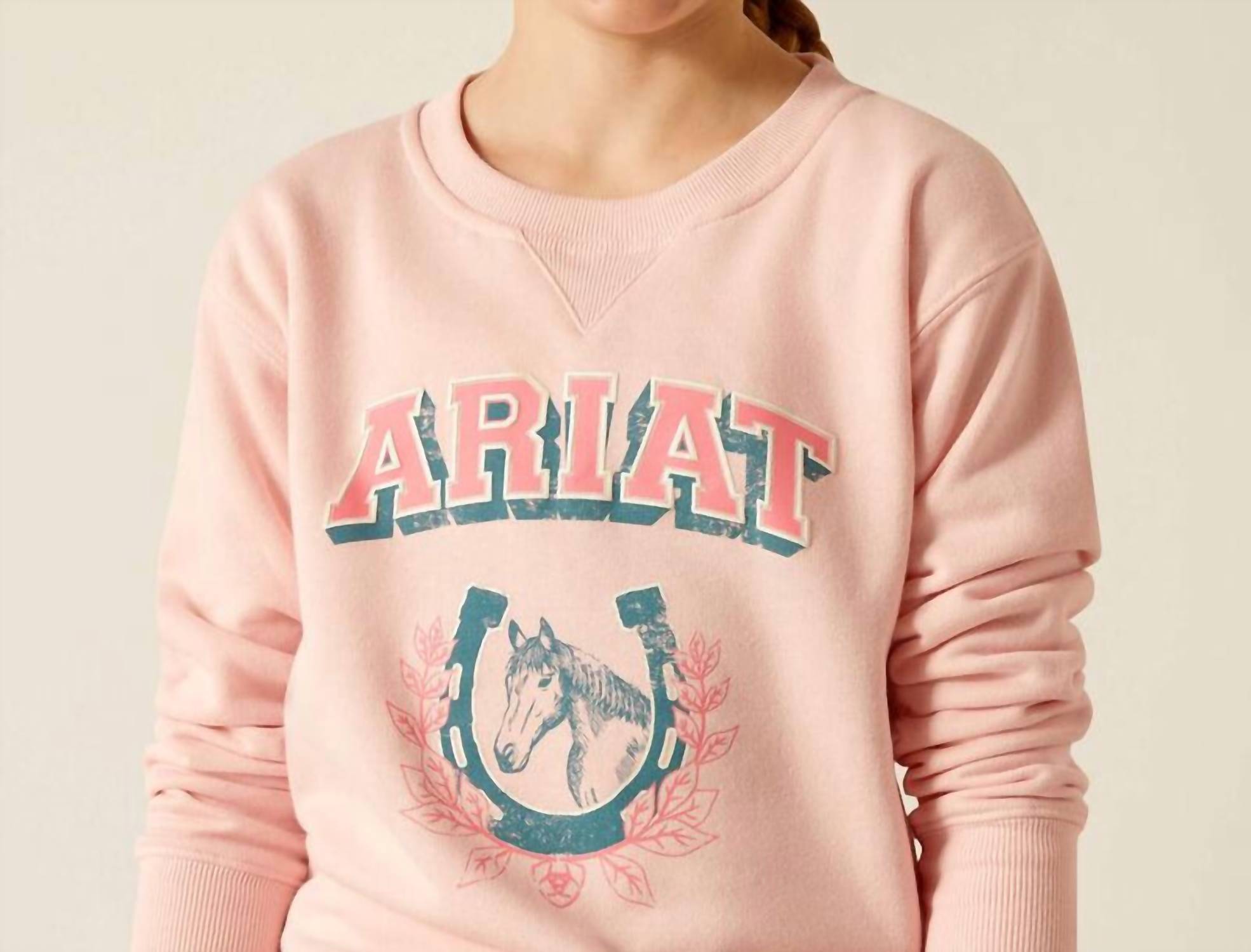 Разработан для максимального комфорта с мерцающими велюровыми деталями. С ребристыми рукавами и низом. Сочетание смеси хлопка и полиэстера с ретро-стилем V-crew для непринужденного стильного образа. Мягкий флисовый материал обеспечивает тепло в моменты отдыха или после домашних дел. Спереди логотип ARIAT в виде подковы. Идеально передает баланс стиля и уюта для молодых владельцев.
