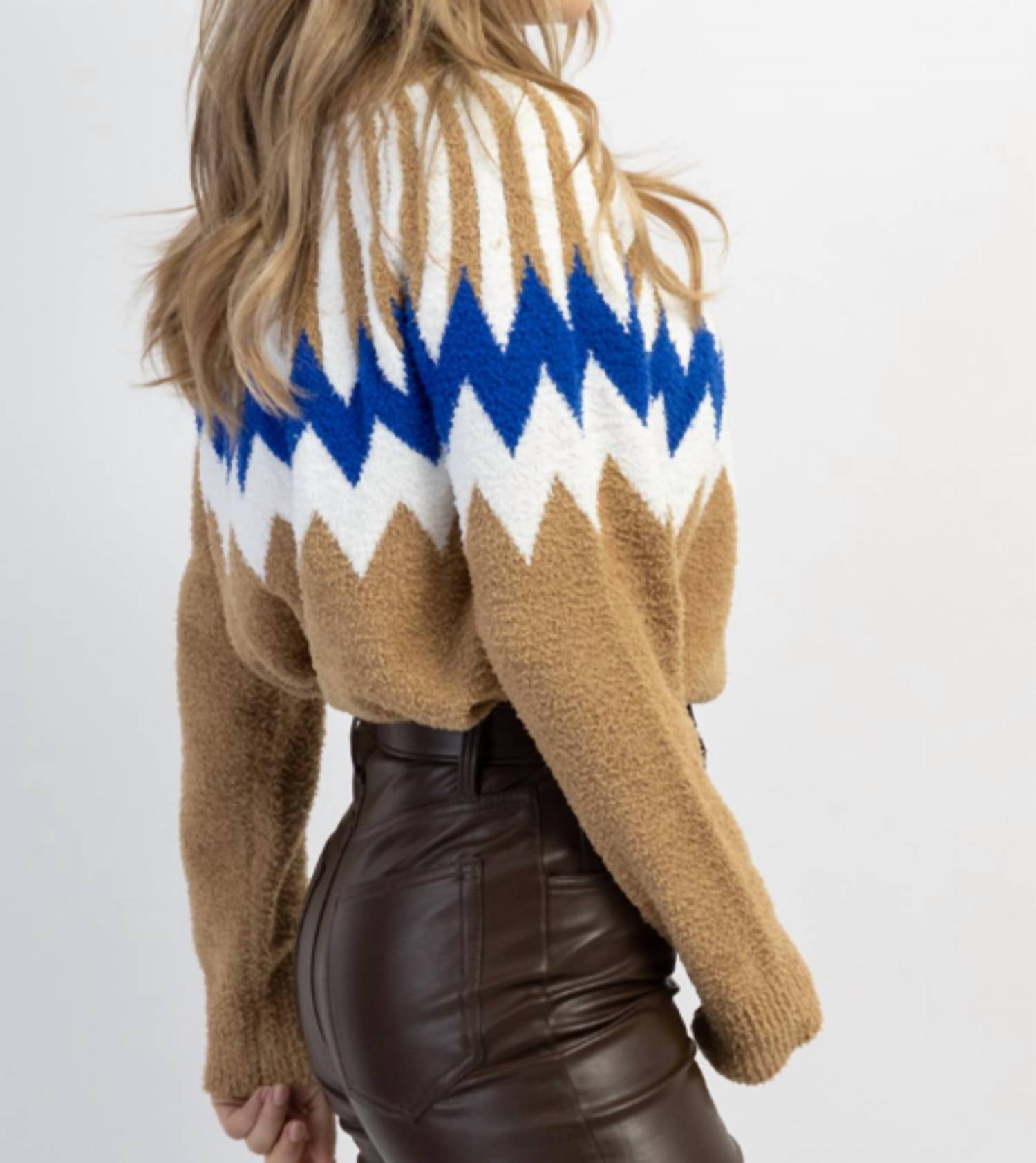 Длинные рукава, пушистая вязка, круглый вырез, контрастный принт в виде звездочек. 100% полиэстер. На модели размер small, рост 5'8.