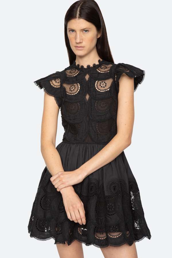 Платье SEA Women's Drea с вышитыми рукавами-крылышками, черное