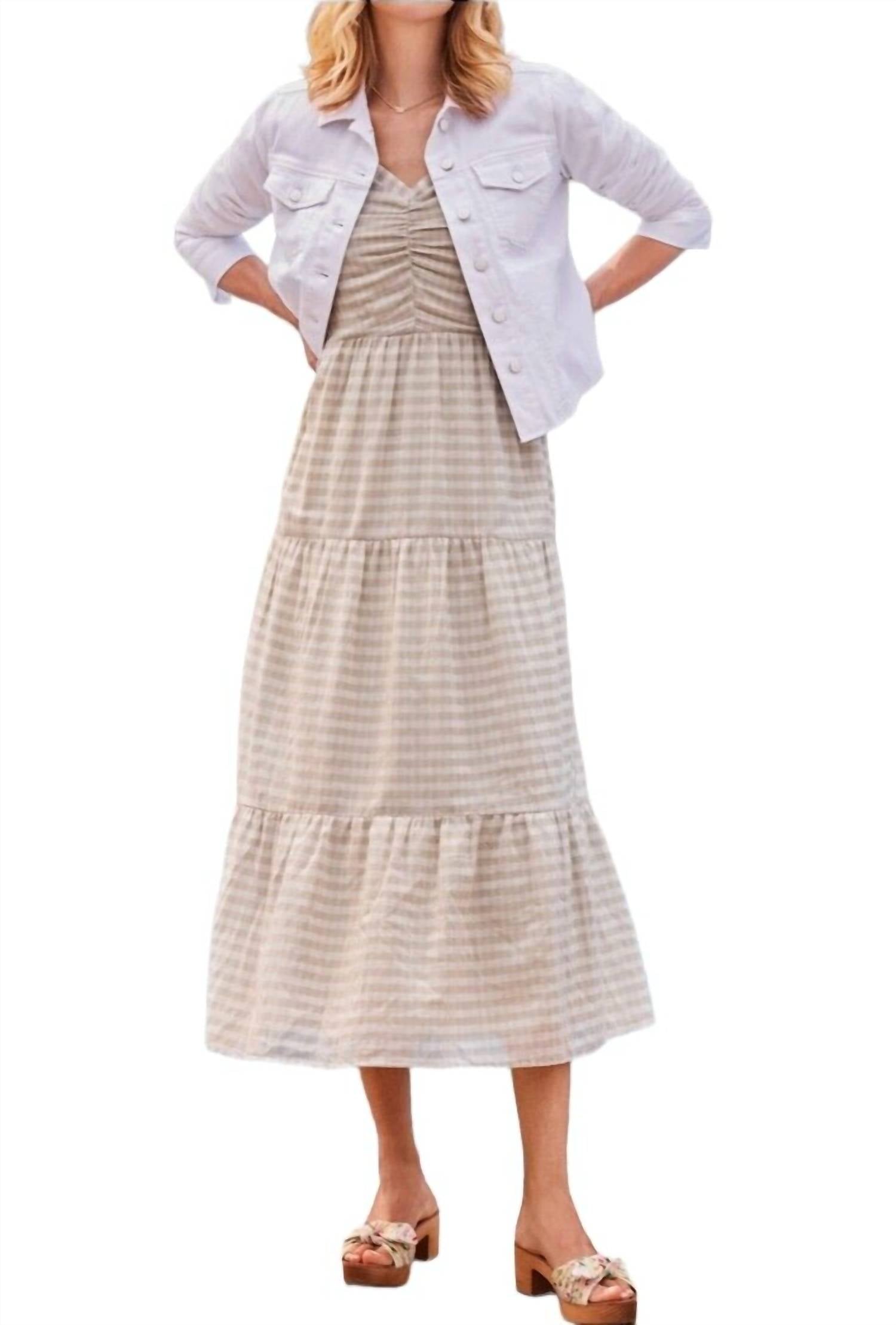 Платье Mirren Gathered Front с ярусами в клетку Eucalyptus Shadow Check Ecru