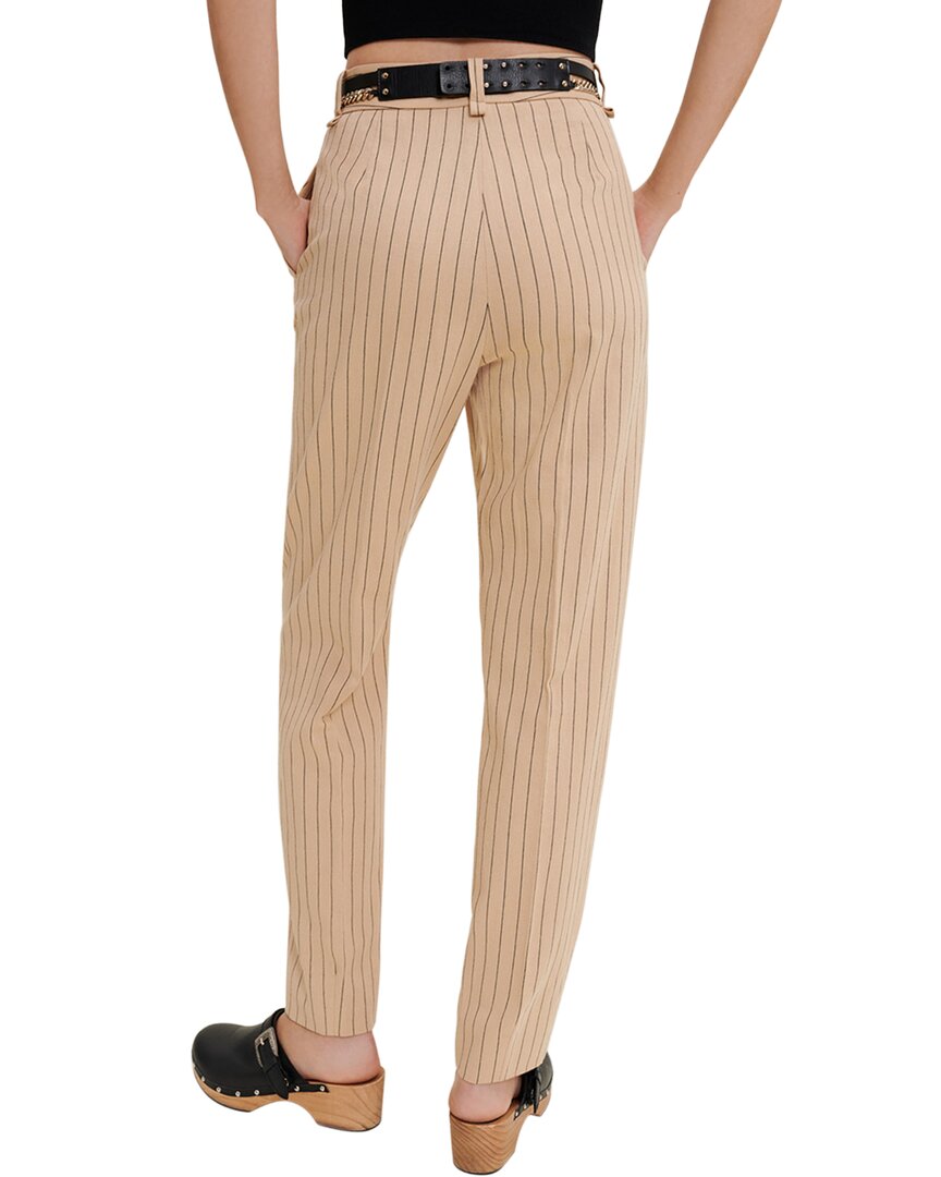 Представляем брюки Maje Linen-Blend, стильное и универсальное дополнение к вашему повседневному гардеробу. Эти шикарные брюки бежевого цвета с удобным внутренним швом около 66,4 дюйма. Изготовленные из высококачественной смеси 74% хлопка и 26% льна, эти брюки не только модные, но и невероятно мягкие и дышащие. Подкладка из 100% хлопка обеспечивает вам комфорт в течение всего дня. Эти брюки можно стирать вручную и они импортного производства, и они наверняка станут основным предметом в вашем шкафу.