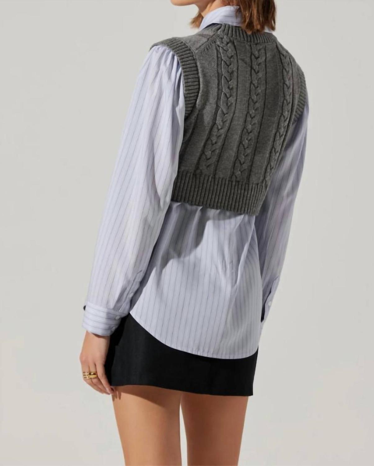 Жилет-свитер ASTR с многослойной косичкой и поплиновой рубашкой. Несъемный жилет с косичкой. Застежка на пуговицы по центру передней части рубашки. Только сухая чистка. Сочетайте с мини-юбкой Z Supply.
