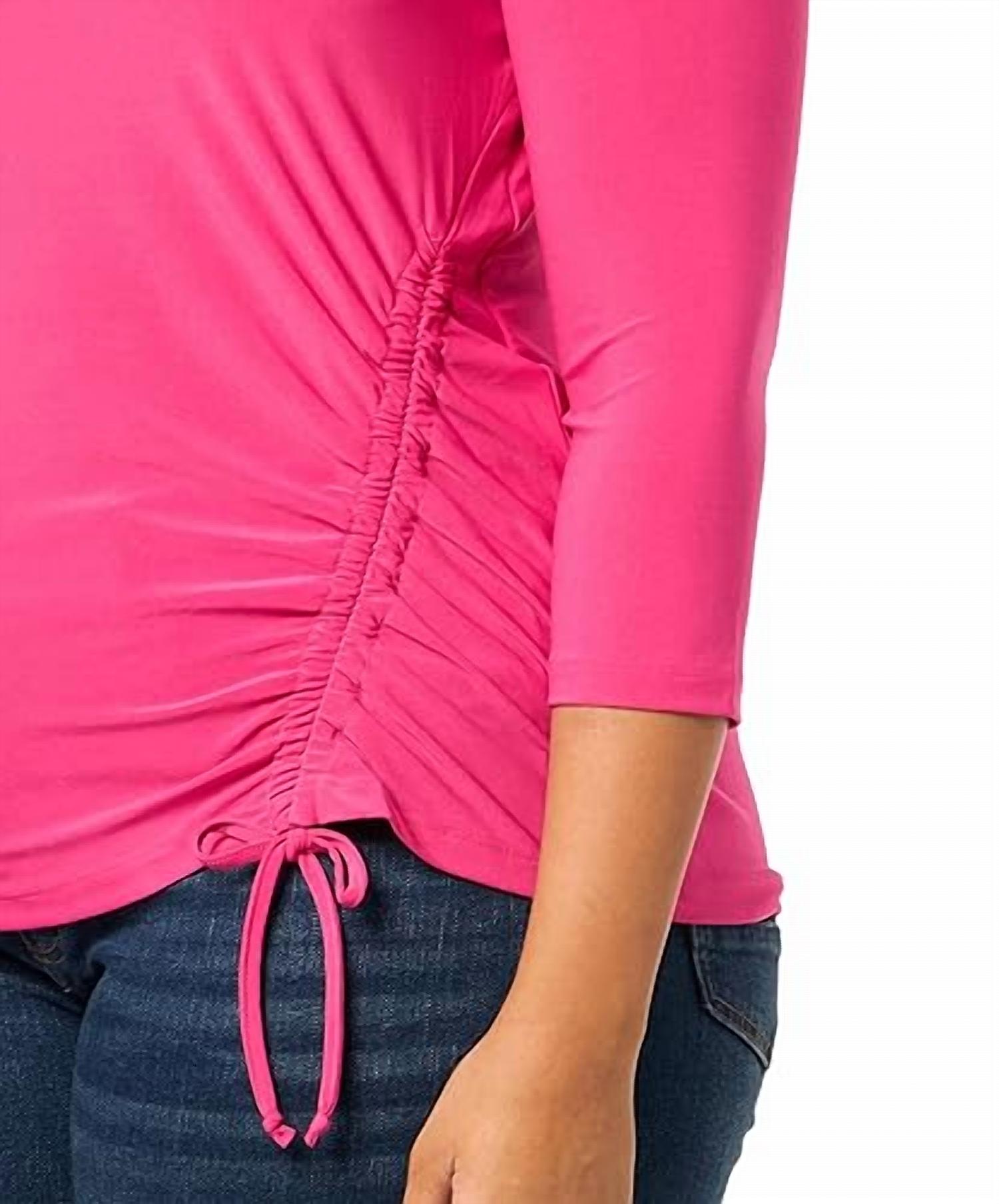 Этот топ из плотной вязки с рукавом 3/4 и круглым вырезом имеет игривую завязку на шнурке спереди для дополнительного стиля. Изготовлен из 95% полиэстера и 5% спандекса, его можно стирать в стиральной машине, он импортный.