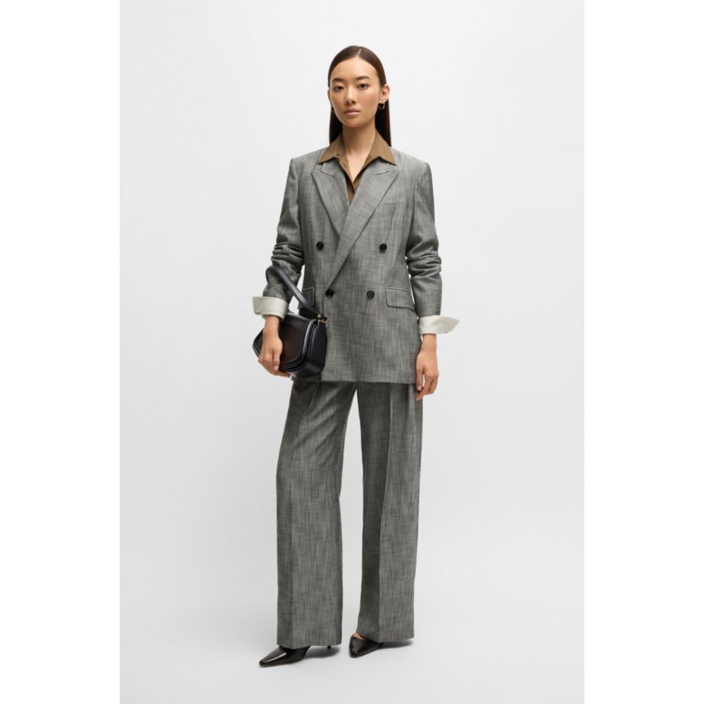 Отличительный пиджак прямого кроя от BOSS Womenswear. Этот элегантный пиджак с частичной подкладкой имеет двубортную застежку и острые лацканы.