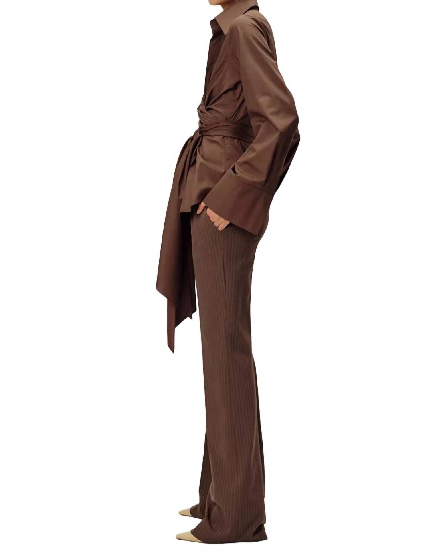 Имеет отложной воротник и длинные рукава с манжетами на резинке. Модель с завязками на талии. 100% хлопковый поплин. Машинная стирка.