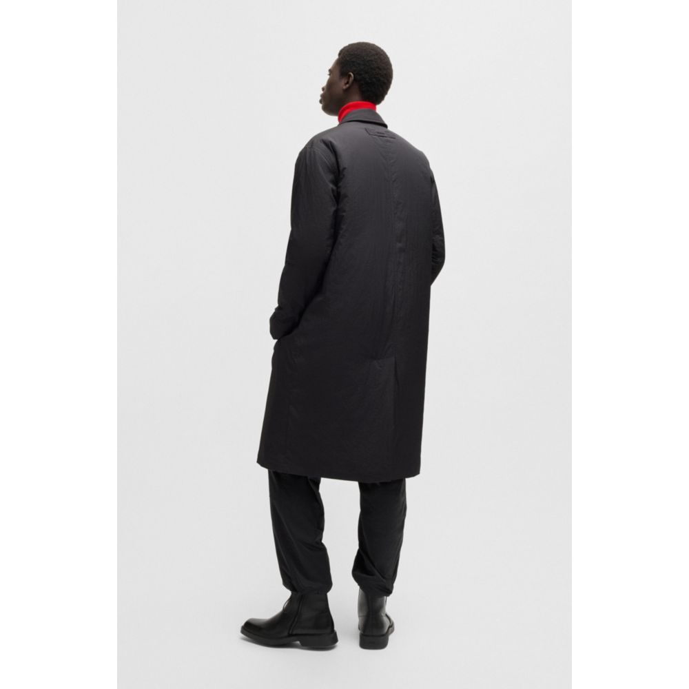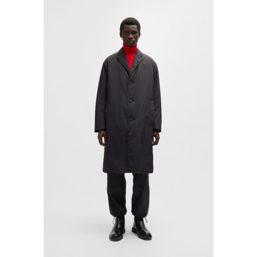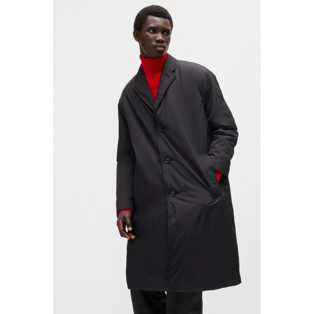 Пальто-автомобиль с пуговицами спереди в непринужденном крое от HUGO. Изделие с фирменными деталями выполнено из водоотталкивающей ткани рипстоп.
