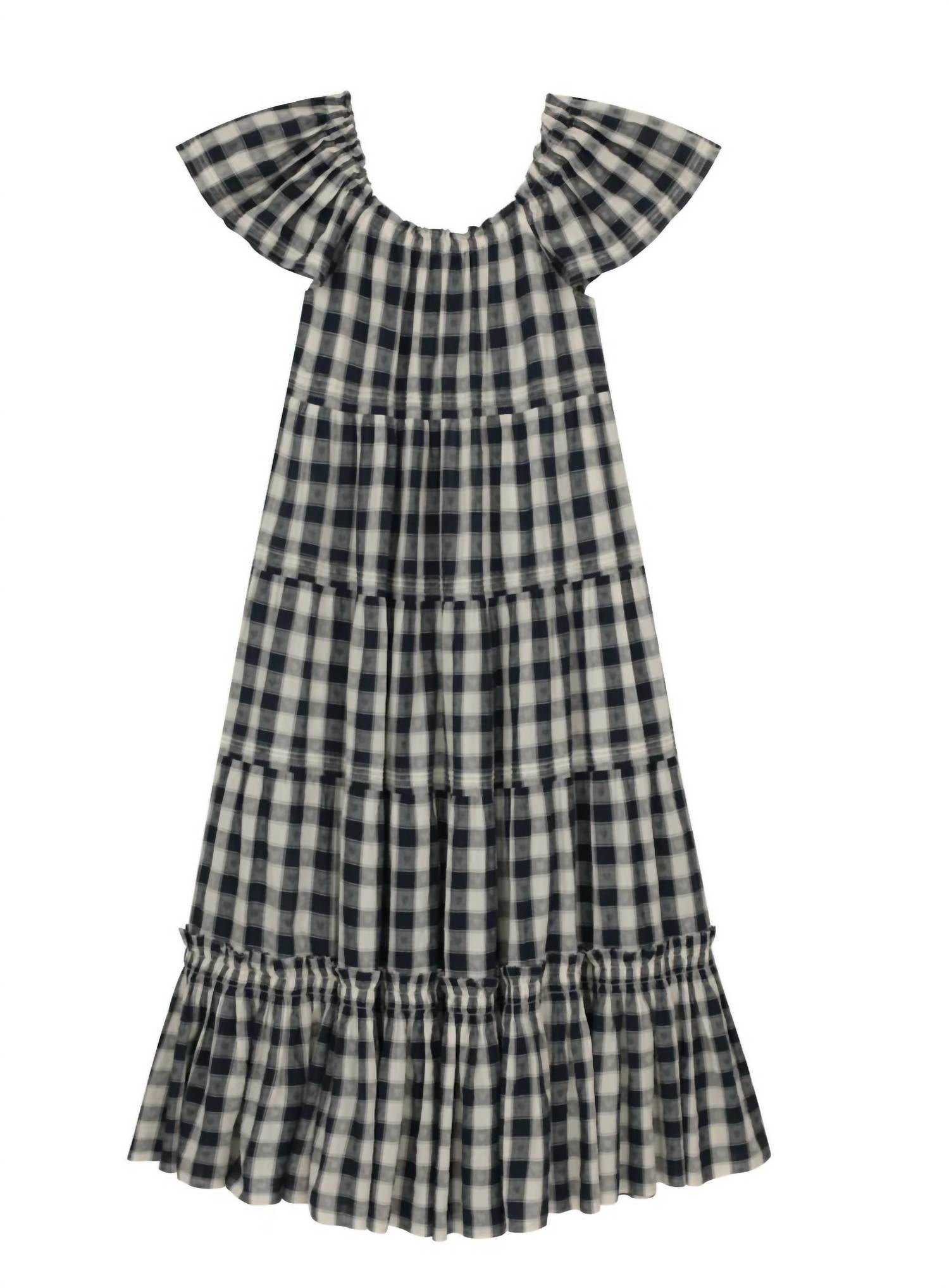 Платье Nightingale в темно-синюю клетку Heart Check THE GREAT