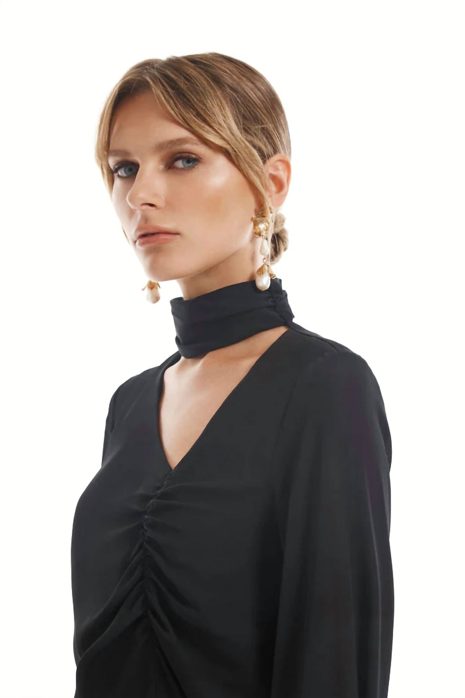 Эта романтичная блузка с развевающимся силуэтом отличается асимметричным вырезом-замочной скважиной и четкими манжетами с пуговицами.