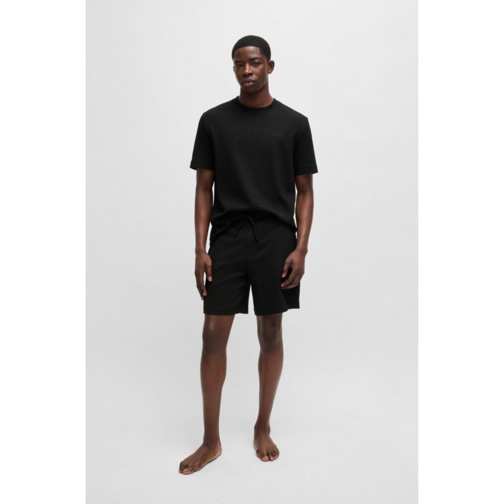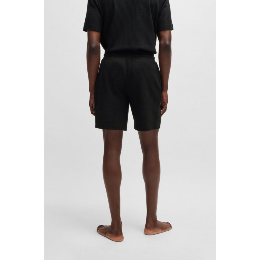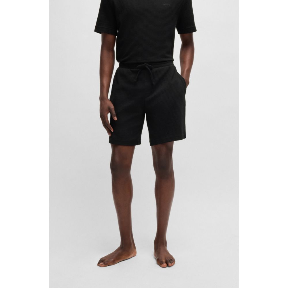 Пижамные шорты с вафельной структурой и вышитым логотипом HUGO, черный