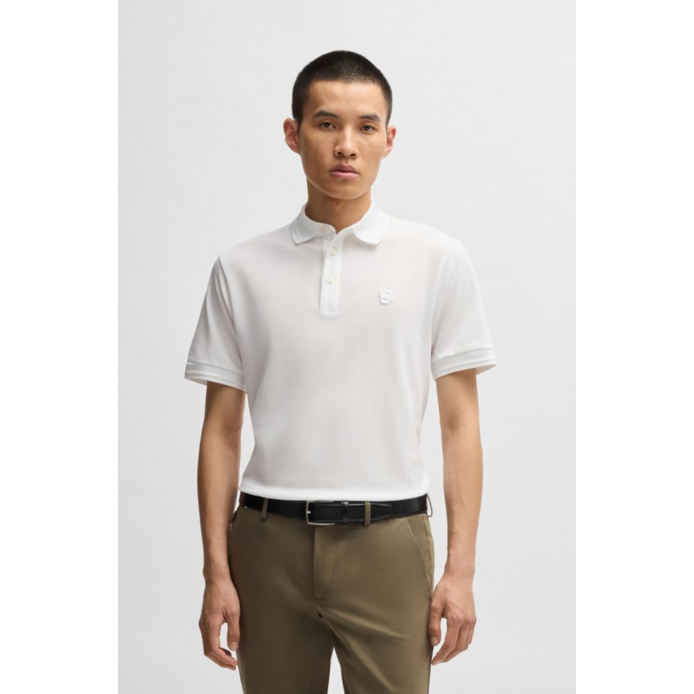 Рубашка поло из хлопка-пике с монограммой Double B BOSS, белый