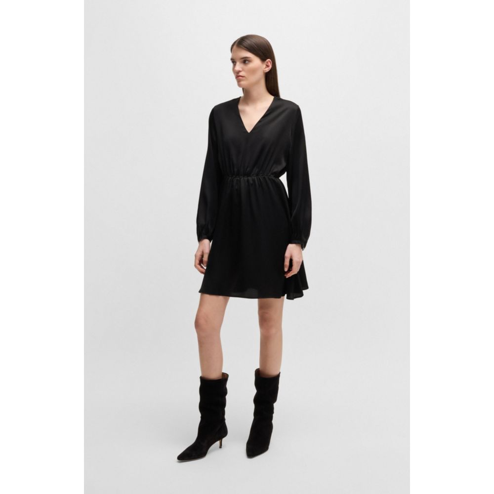 Платье А-силуэта из мягкого кованого атласа от BOSS Womenswear. Эта легкая модель имеет V-образный вырез, эластичную талию и объемные рукава.