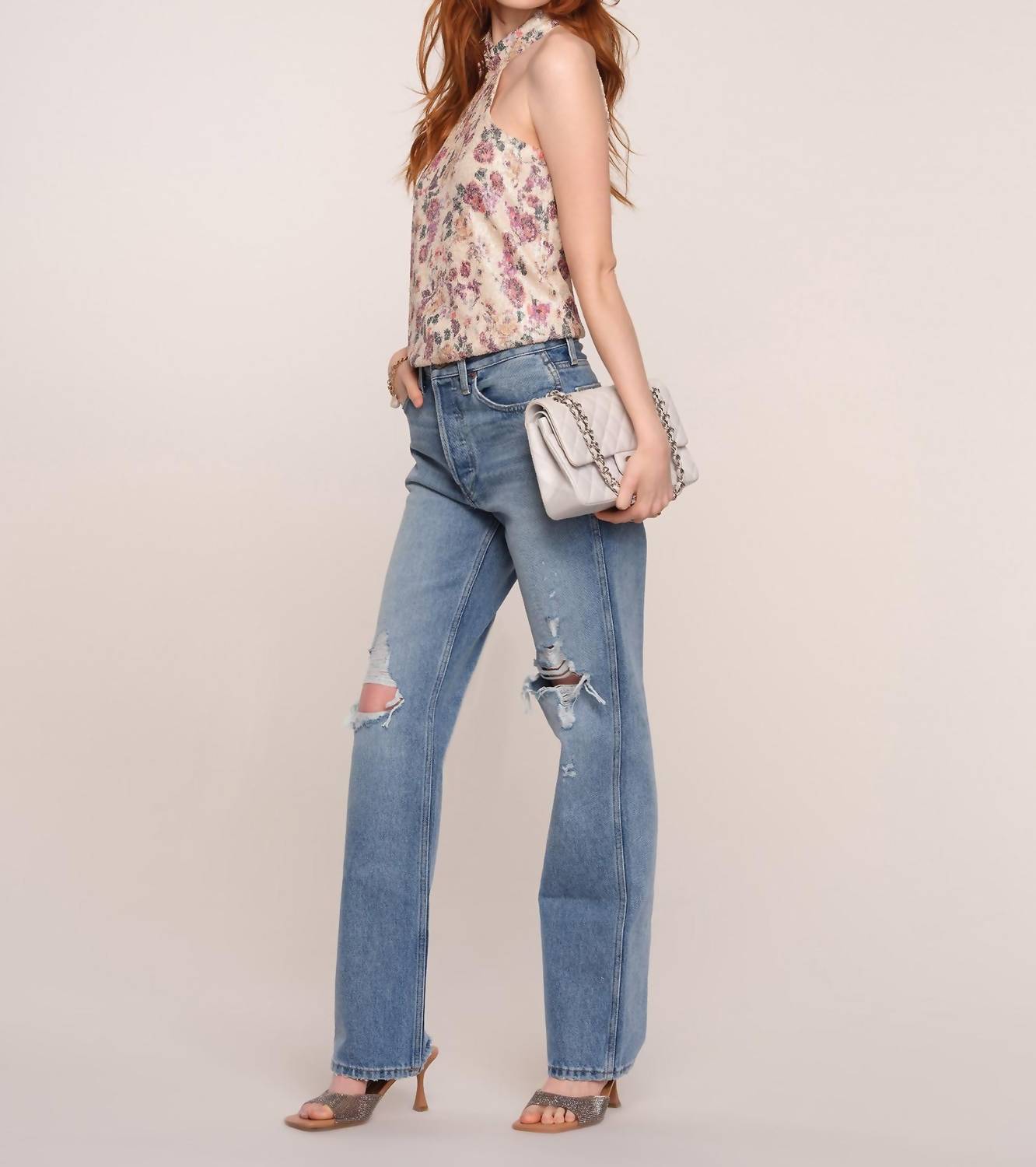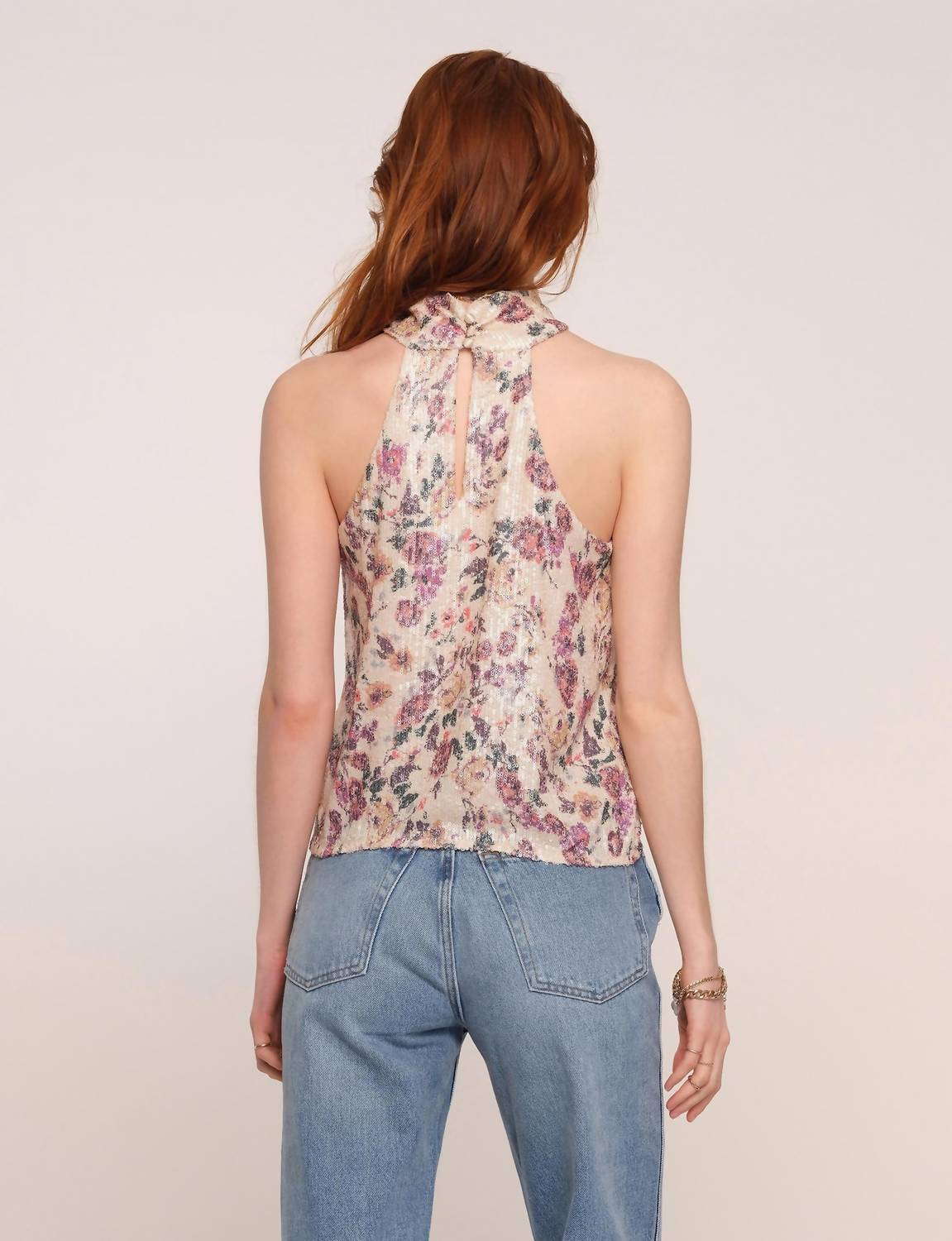 Топ Brody украшен сверкающими пайетками и застежкой на пуговицы-замочную скважину сзади. Сетка с пайетками. Облегающий крой. Воротник-стойка. Застежка на пуговицы сзади. 100% полиэстер. Мерки указаны для размера S. Длина — 19 дюймов от верхней точки плеча.
