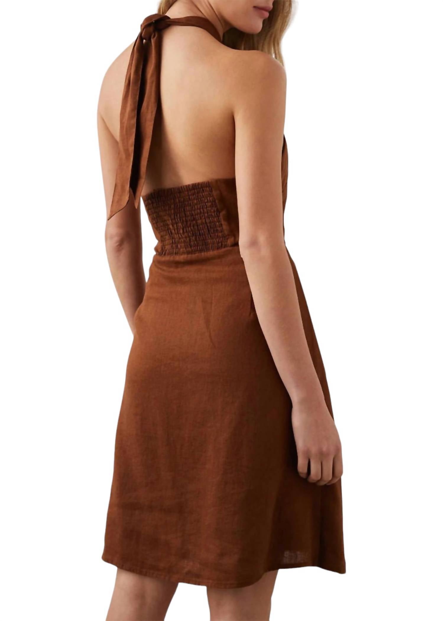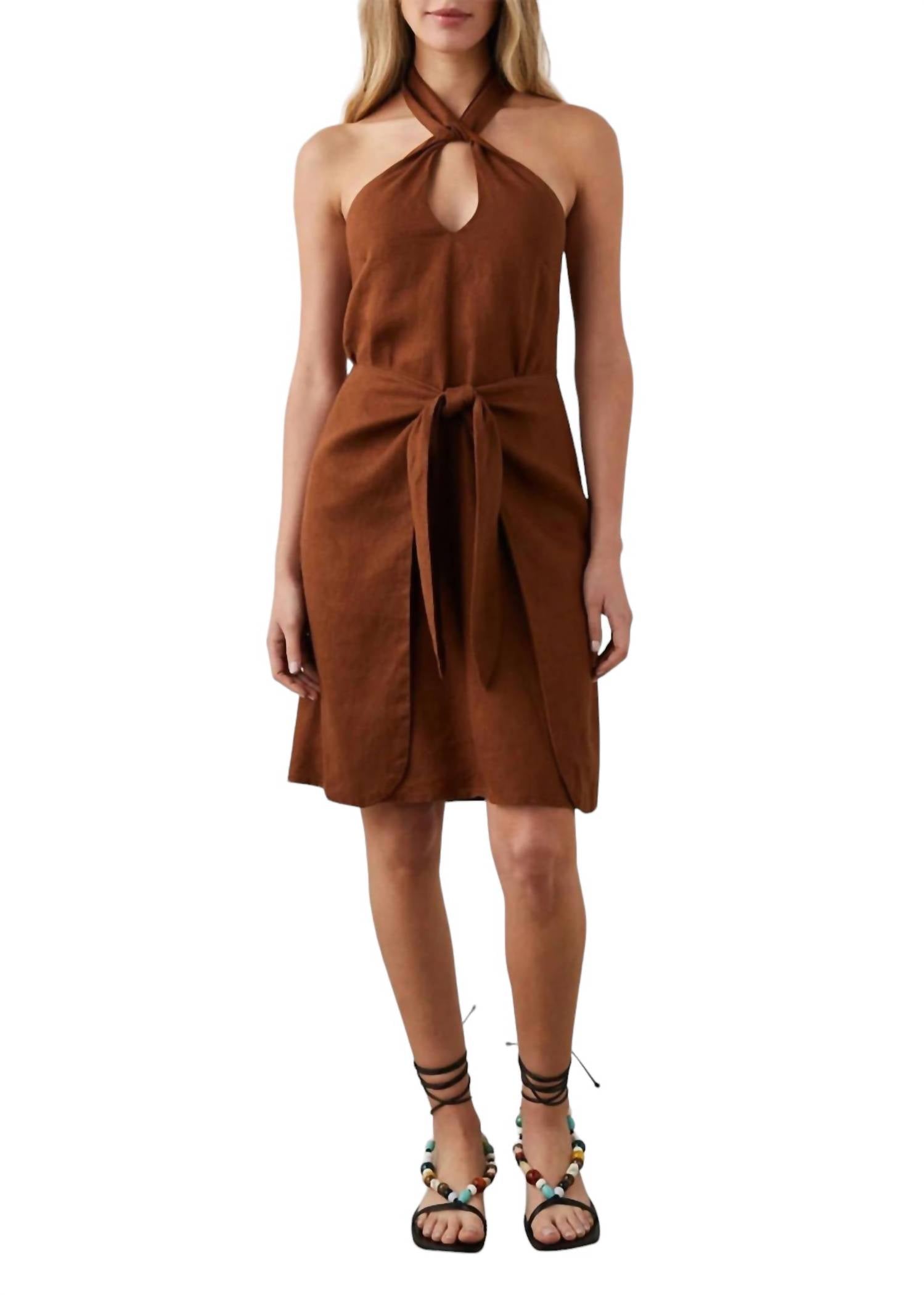 Легкое и облегающее платье миди с американской проймой и запахом спереди. Ткань - 100% лен. Соответствует размеру.