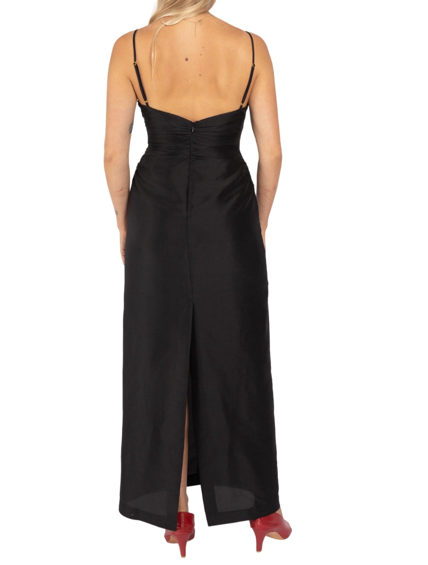 V-образный вырез и бретельки-спагетти изящно обрамляют плечи, а сплошной узор обеспечивает вневременную универсальность, идеальную для любого случая. Застежка-молния обеспечивает красивую посадку по фигуре, соответствующую размеру. 100% шелк. Подкладка, 55% полиэстер, 45% вискоза.