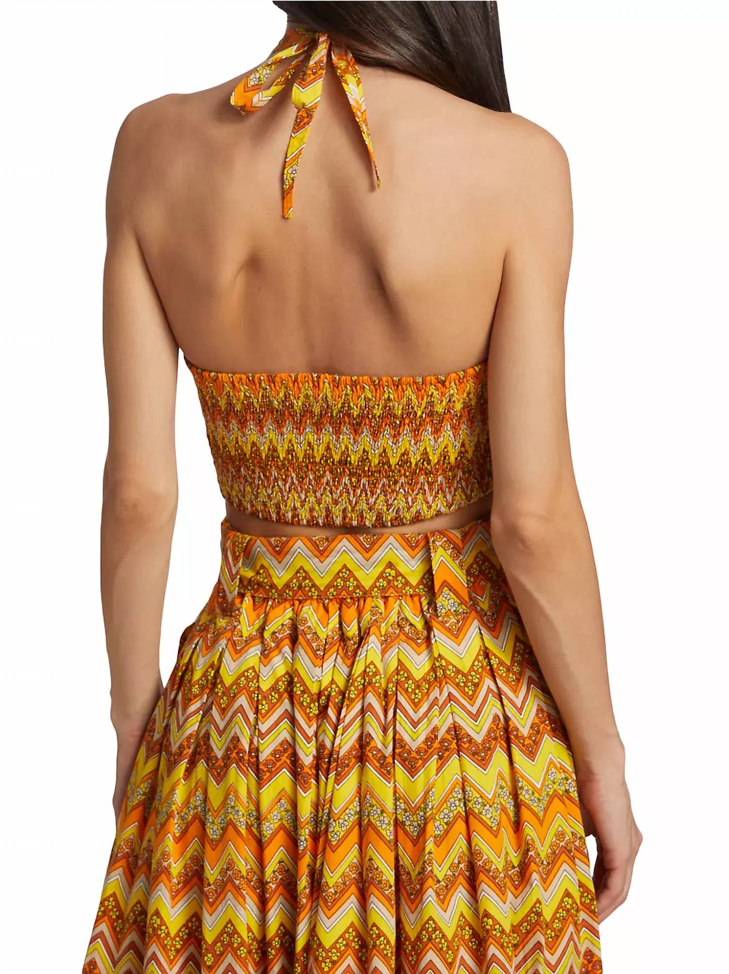 100% хлопок. Завязка на шее. Без рукавов. Завязывается на затылке. Ручная стирка. Импортная. Длина около 8,75 дюймов от верха до подола. На модели размер S (американский), рост 5 футов 10 дюймов.