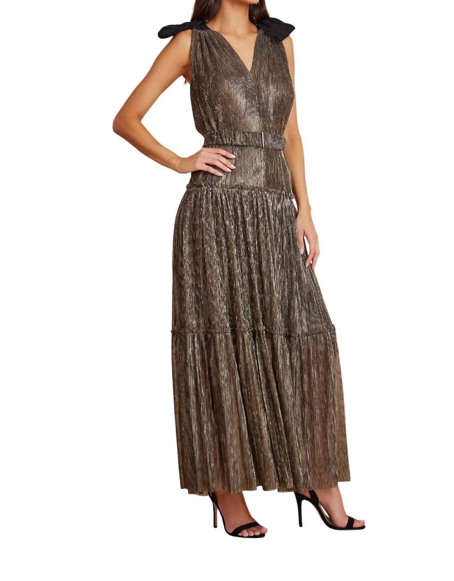 V-образный вырез. Завязки на плечах. Оборки на юбке. Съемный пояс для идеальной посадки. Многоуровневая юбка.