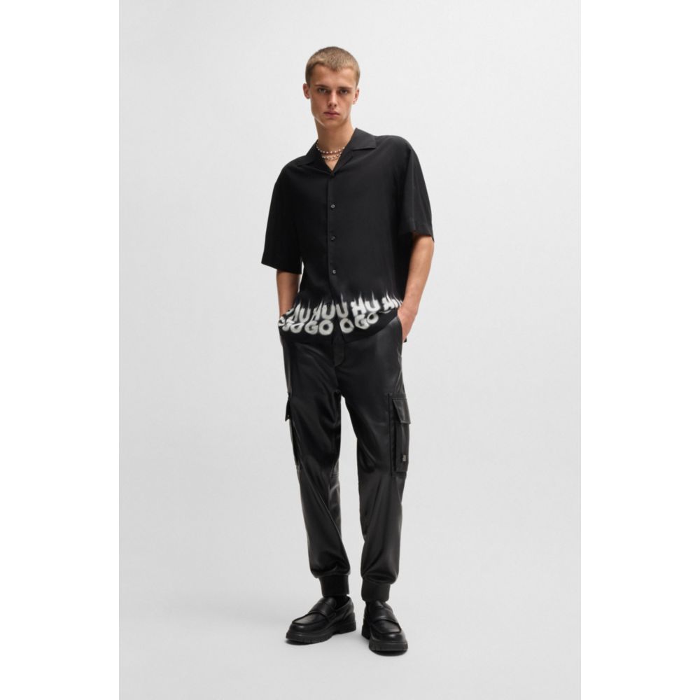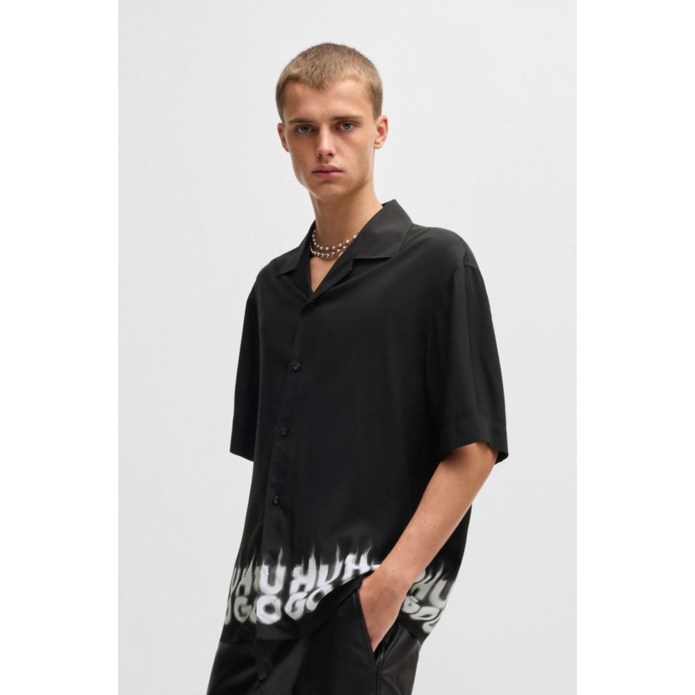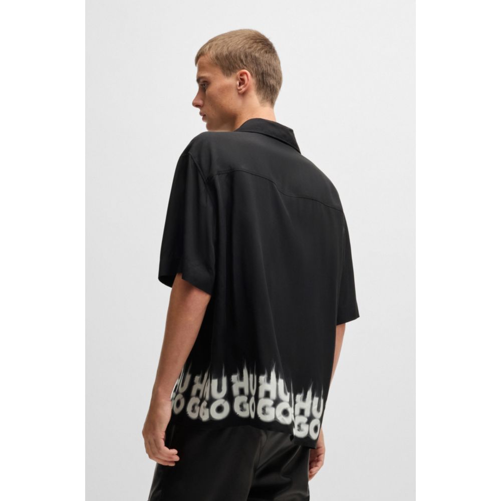Рубашка свободного кроя с принтом-логотипом в виде дыма HUGO, черный