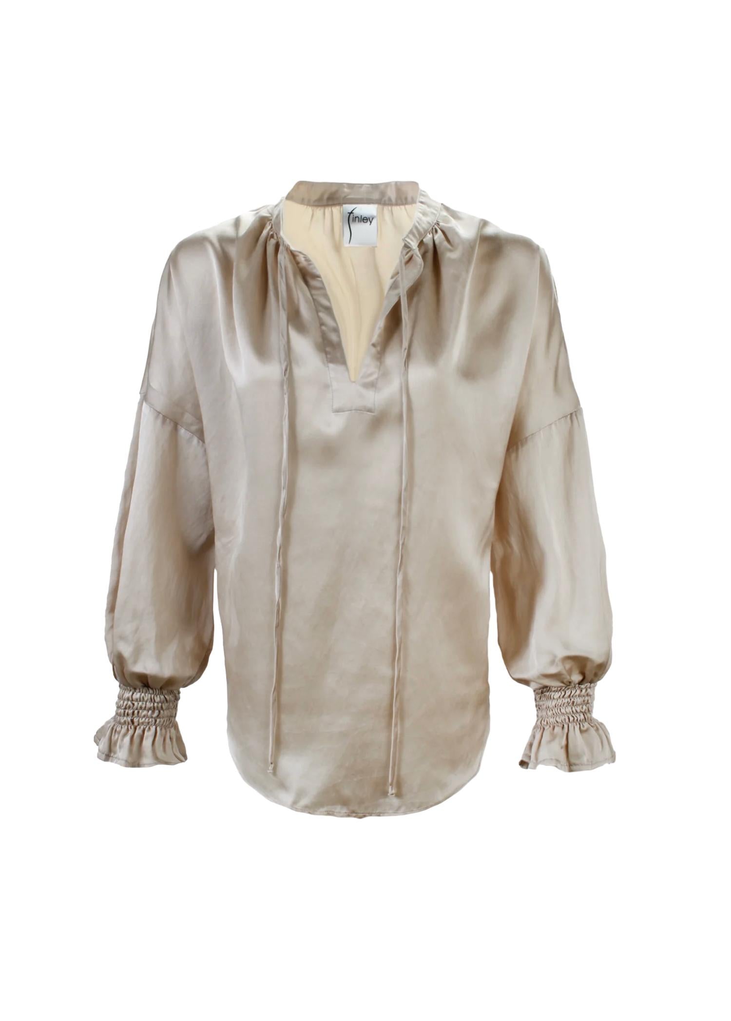 Топ Finley "Morrisey" с абстрактным принтом джунглей. Длина около 27,5 дюймов от плеч до подола; длина рукавов 24,5 дюйма. Разрез горловины с завязками. Длинные рукава; присборенные манжеты. Свободный силуэт. Изогнутый подол. Модель в стиле пуловера. Вискоза. Ручная стирка. Сделано в США из импортных материалов.