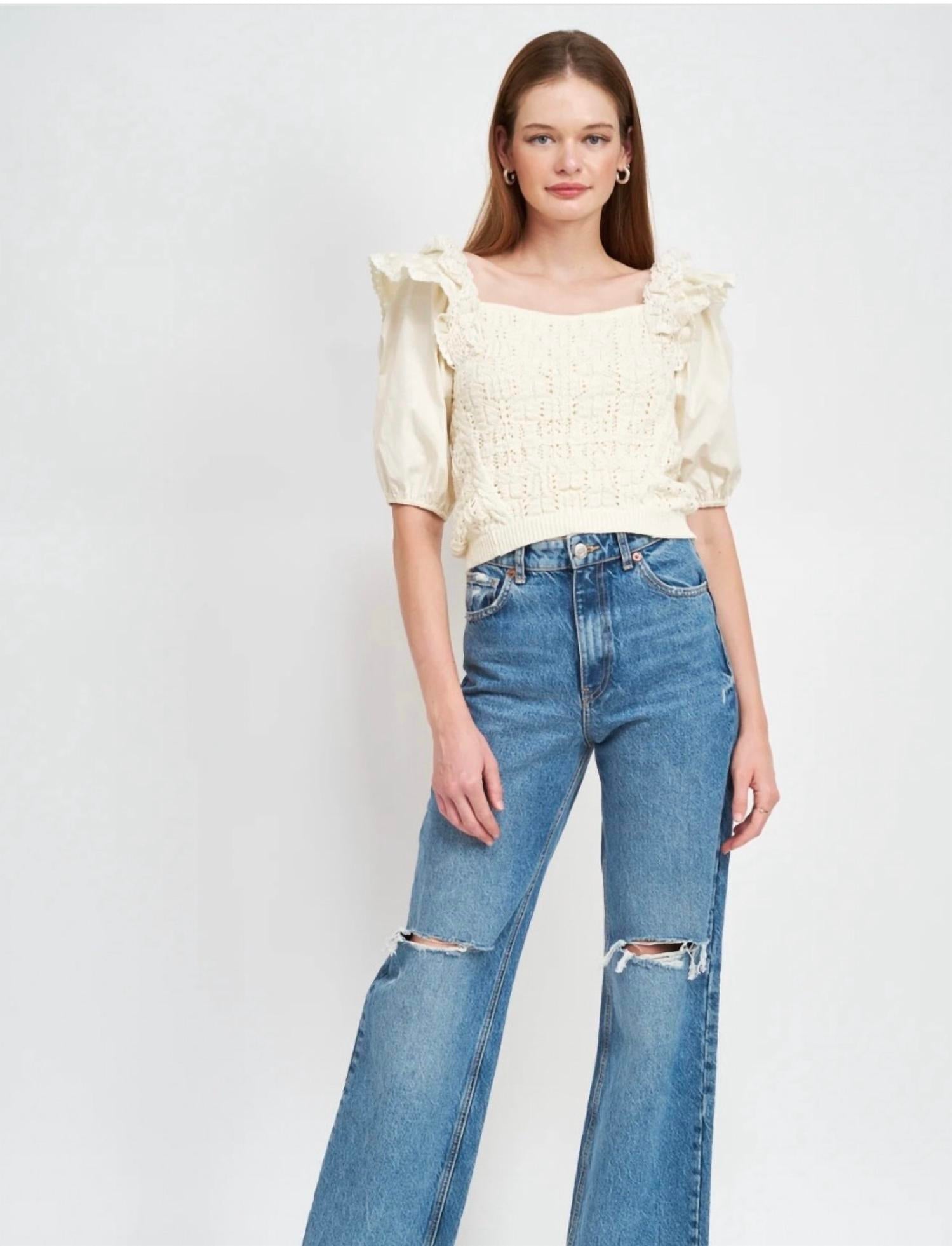 Покажите немного кожи в этом милом и повседневном укороченном топе. 49% вискоза, 28% полиэстер, 23% нейлон; рукава 50% нейлон, 50% полиэстер. Стиль пуловера. Ручная стирка. Импортный.