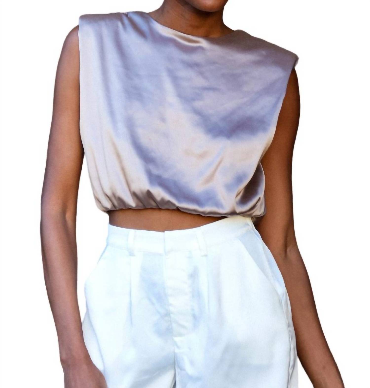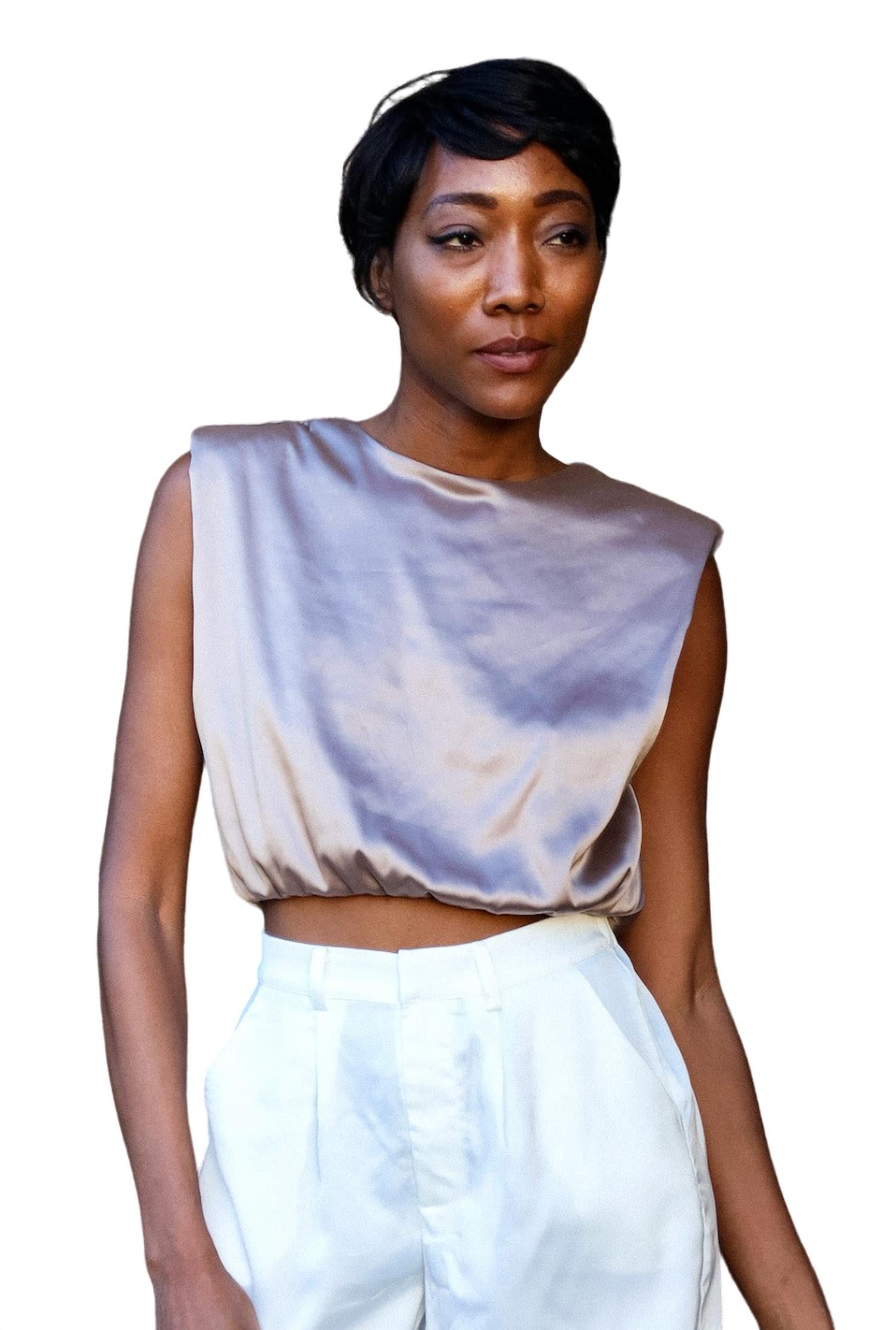Шелковый топ с подплечниками. Модный и универсальный. Подходит для любого случая.