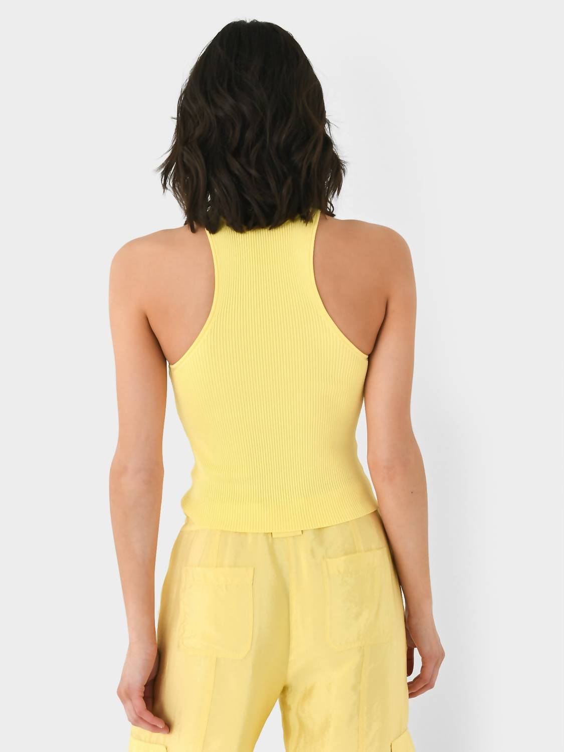 Круглый вырез. Фасон «борцовка». Прямой подол. Трикотаж в рубчик. 80% вискоза, 20% нейлон. Классический крой. На модели майка размера small. Параметры модели: рост — 5 футов 9,5 дюймов | бюст — 32B | талия — 25 дюймов | бедра — 36 дюймов | размер платья — 2-4 (США).