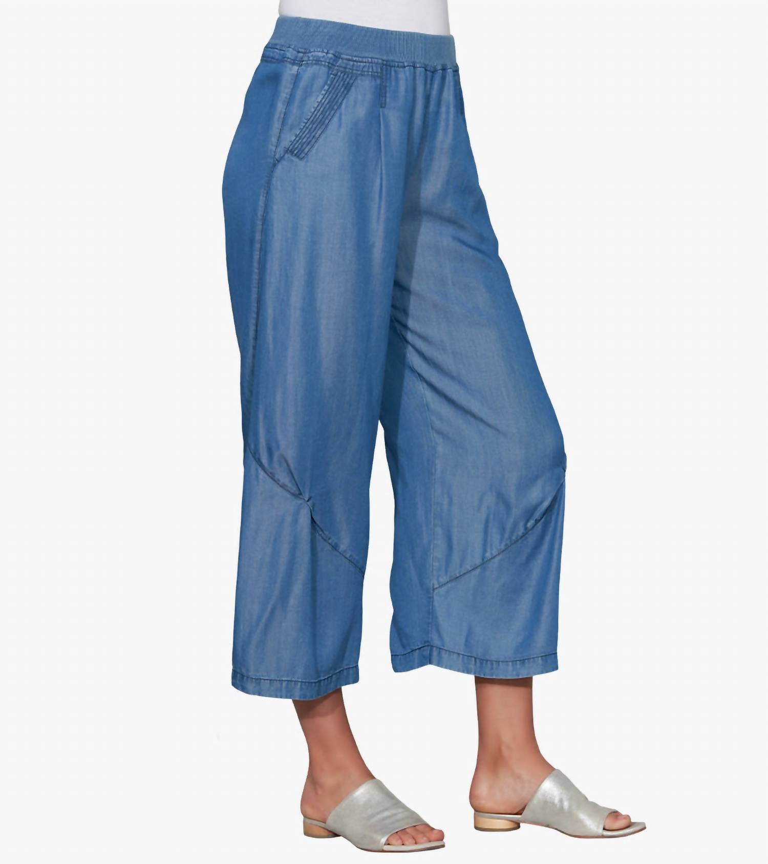 Свободно сидящие, длинные брюки с архитектурной нижней частью штанины, защипами спереди и сзади создают непринужденный образ, который передает артистизм и непринужденный дух этого беззаботного стиля из 100% денима Tencel. Импортируется. Машинная стирка.