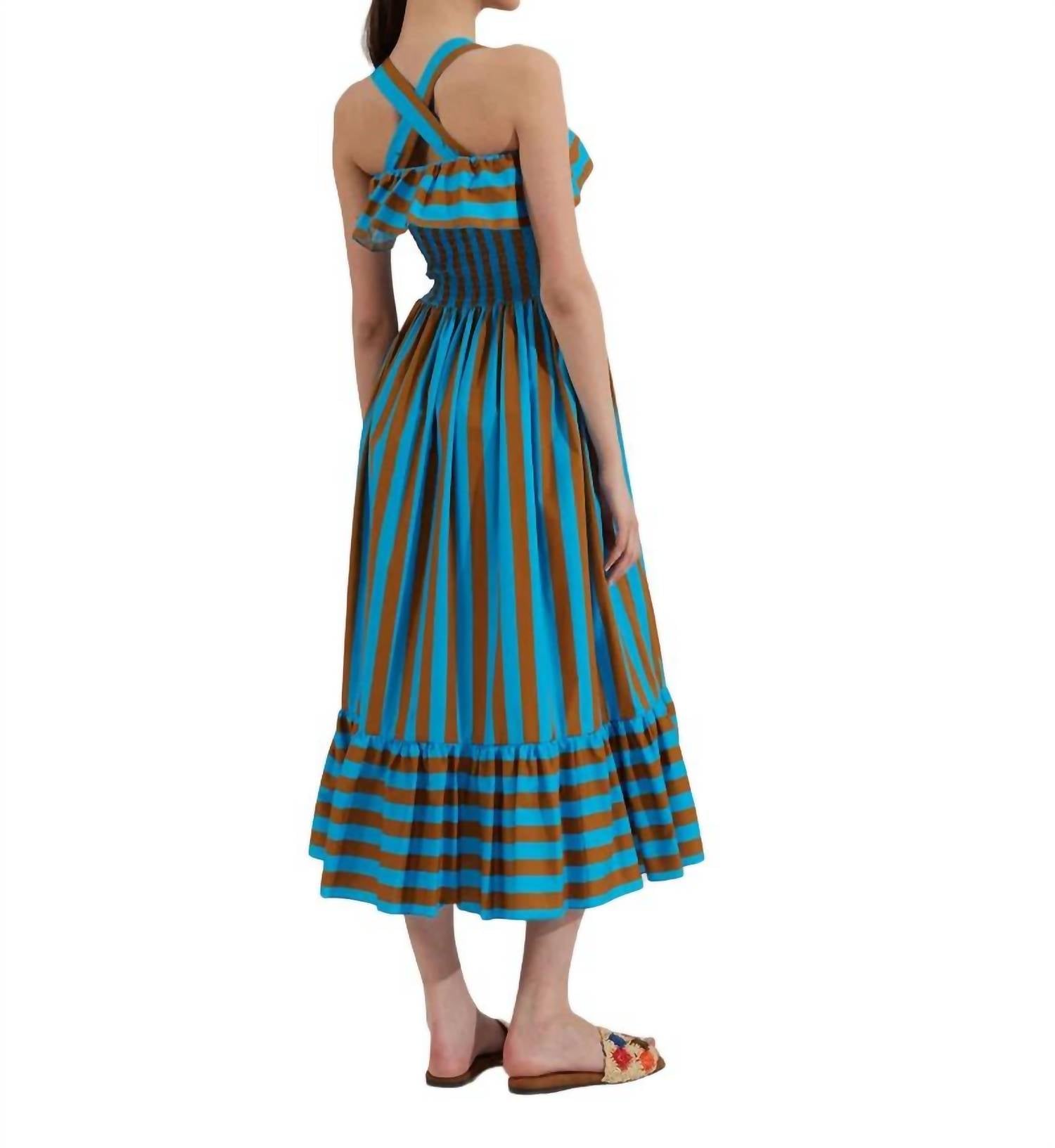 Длинная струящаяся юбка украшена игривыми оборками на груди и подоле. С регулируемыми бретелями, которые можно носить прямо на спине, перекрещивать как халтер или полностью снимать для шикарного образа без бретелек. Эластичный и собранный в рюши лиф подчеркивает линию талии. С карманами. 100% хлопок.