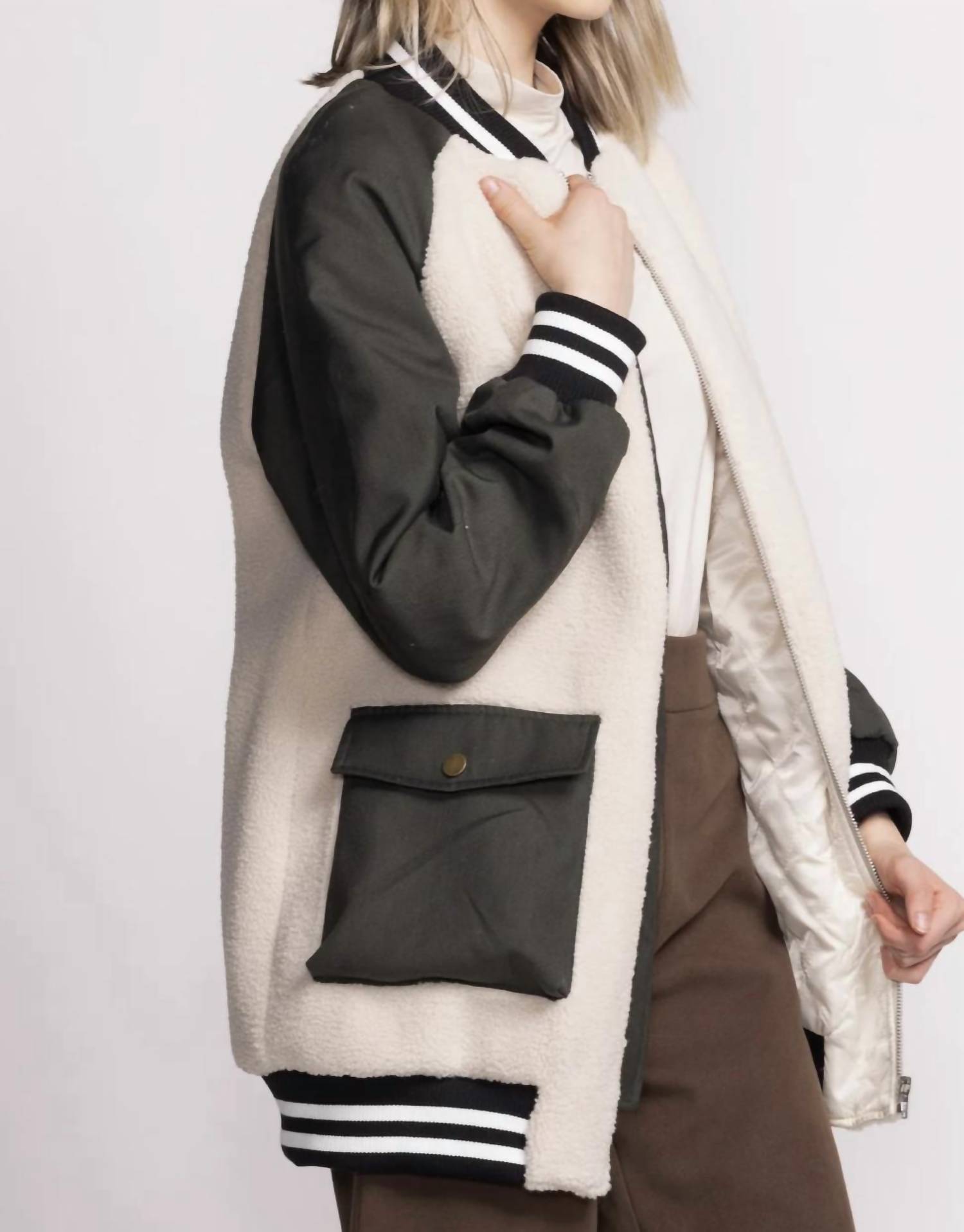 Сделайте любой наряд мгновенно крутым, сочетая его с этой курткой-бомбером. Куртка-бомбер Marlene зеленого и кремового цвета — ваш модный образ на осень. Эта шикарная вещь легко сочетается с любым нарядом, что делает ее универсальным дополнением к вашему сезонному гардеробу.