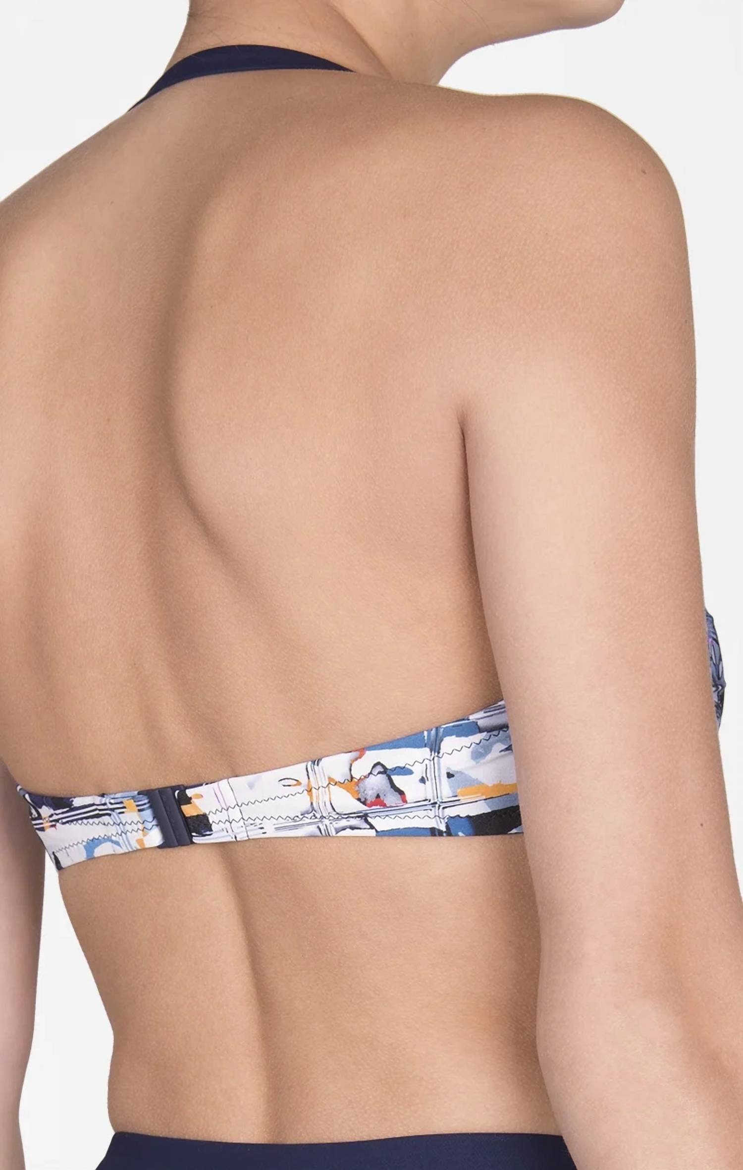 Съемный регулируемый ремешок. Металлическая отделка V-образным кольцом. Мягкие чашки со съемными подушечками. Косточки. Гибкие косточки. 75% полиамид, 25% эластан.