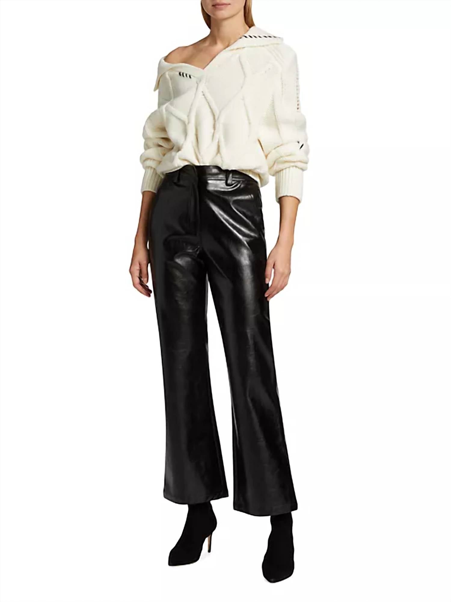 Слегка расклешенные брюки Mebrooke от En Saison воплощают смелый стиль с отделкой из гладкой искусственной кожи. Талия на резинке, шлевки для ремня, прорезные карманы по бокам, накладные карманы сзади. 55% полиуретана/45% вискозы. Химчистка. Импорт.