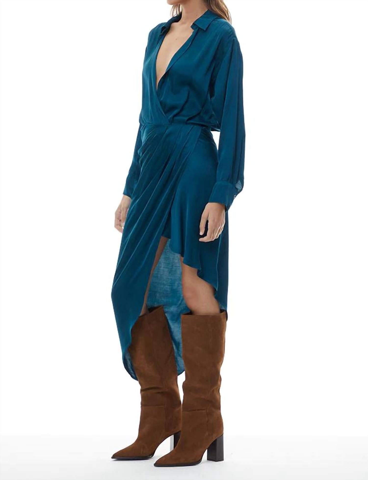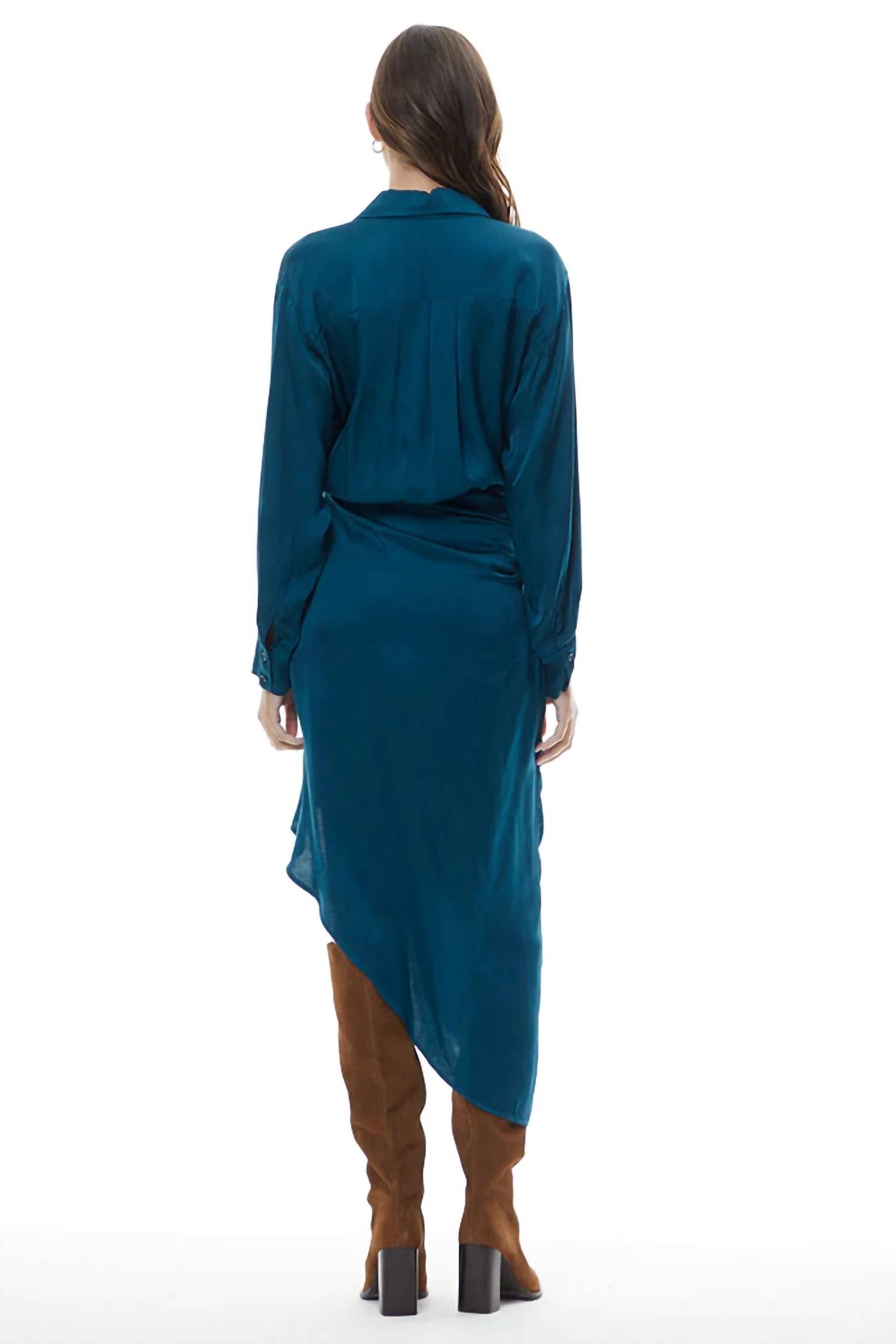 Весеннее переосмысление платья-рубашки. Спущенное плечо. Острый воротник. Запах спереди. Отверстие под брючину. Асимметричный подол. Текстурированная ткань из вискозного крепа. 100% вискоза. Бережная машинная стирка. Родилось на улицах Лос-Анджелеса.