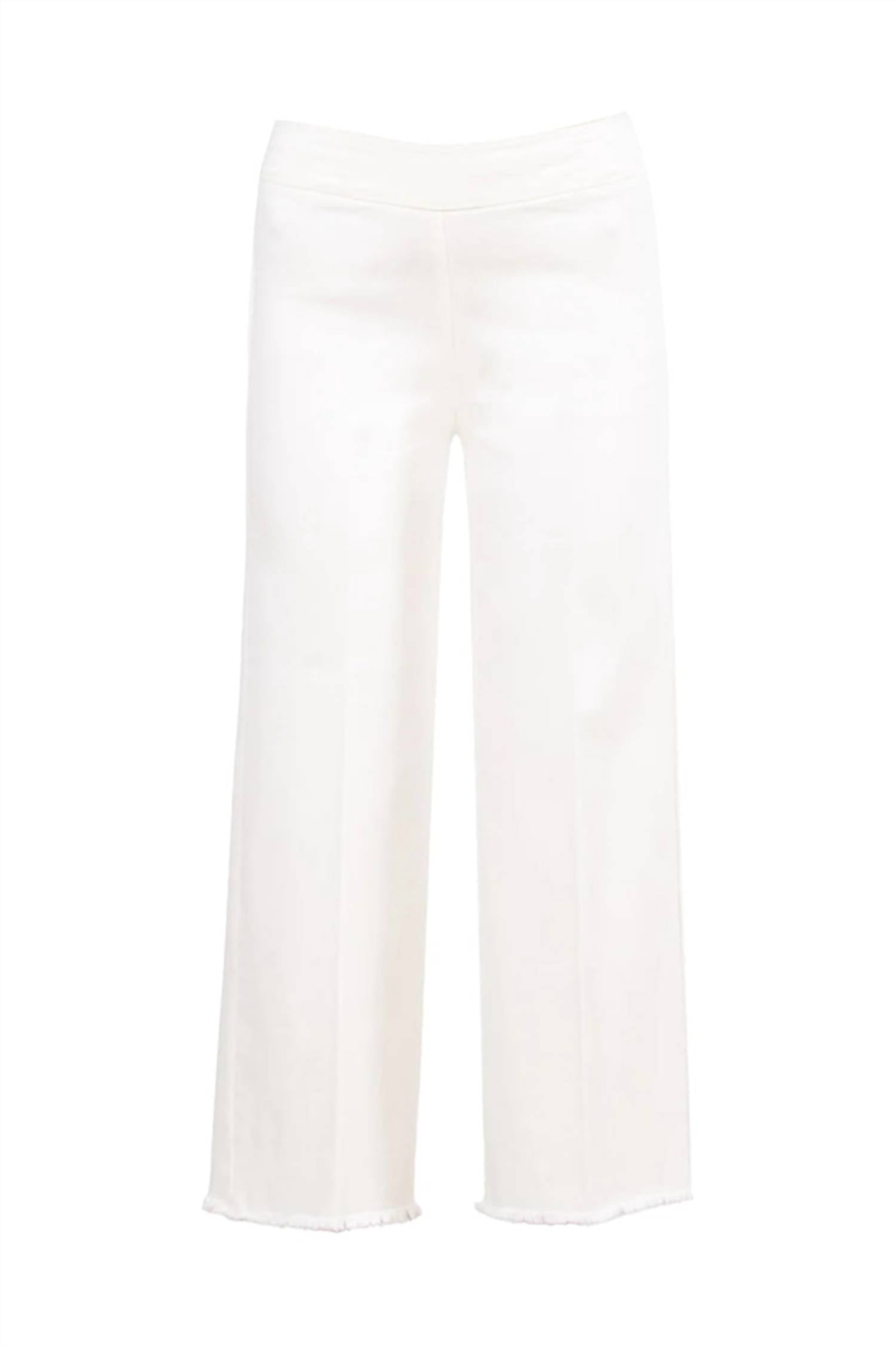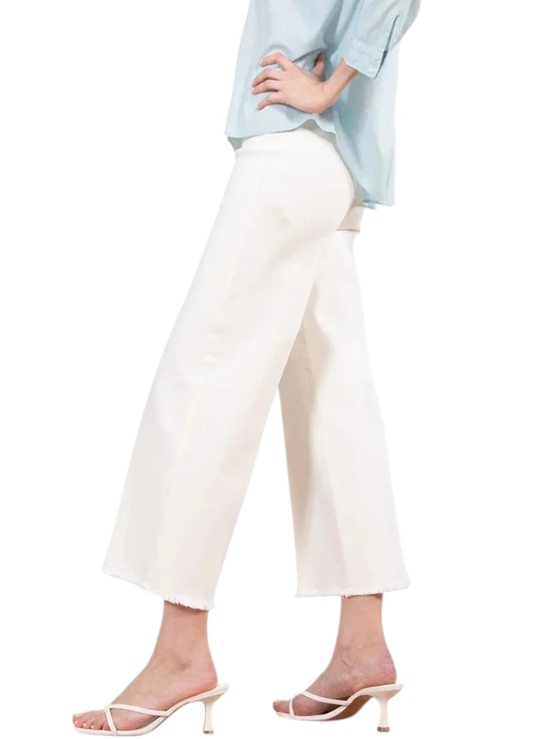 Брюки с высокой посадкой. Эластичный деним для комфорта и гибкости. Широкие штанины, укороченный фасон. Эластичный пояс для надежной посадки. Необработанный край для повседневного, незавершенного вида. Внутренний шов - 25 дюймов, посадка - 11 дюймов, отверстие для брючин - 19 дюймов. Соответствует размеру. 92% хлопок, 7% полиэстер, 1% спандекс. Ручная стирка. Сделано в США