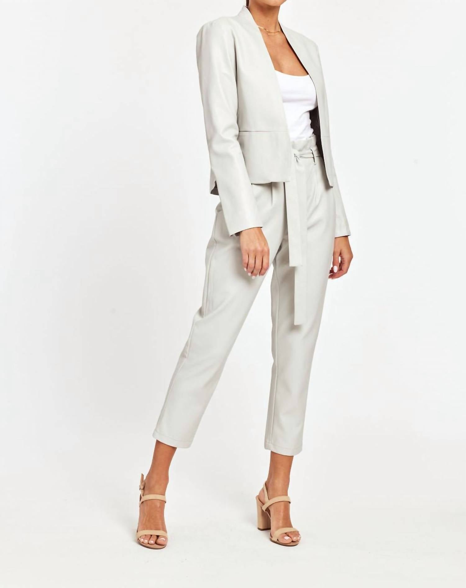 Блейзер из искусственной кожи с открытым передом. Элегантная и профессиональная эстетика. Тщательный пошив для изысканного силуэта. Современный дизайн с открытым передом. Скрытые карманы для практичности. Тонкая подкладка в тонкую полоску для контраста. Универсальный вариант для встреч или вечерних выходов.